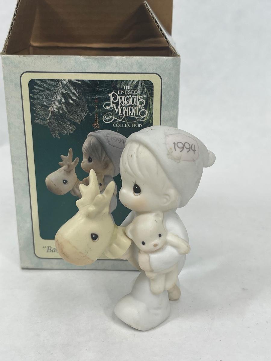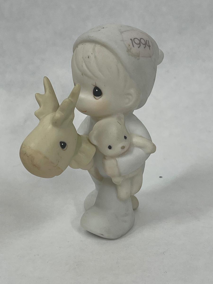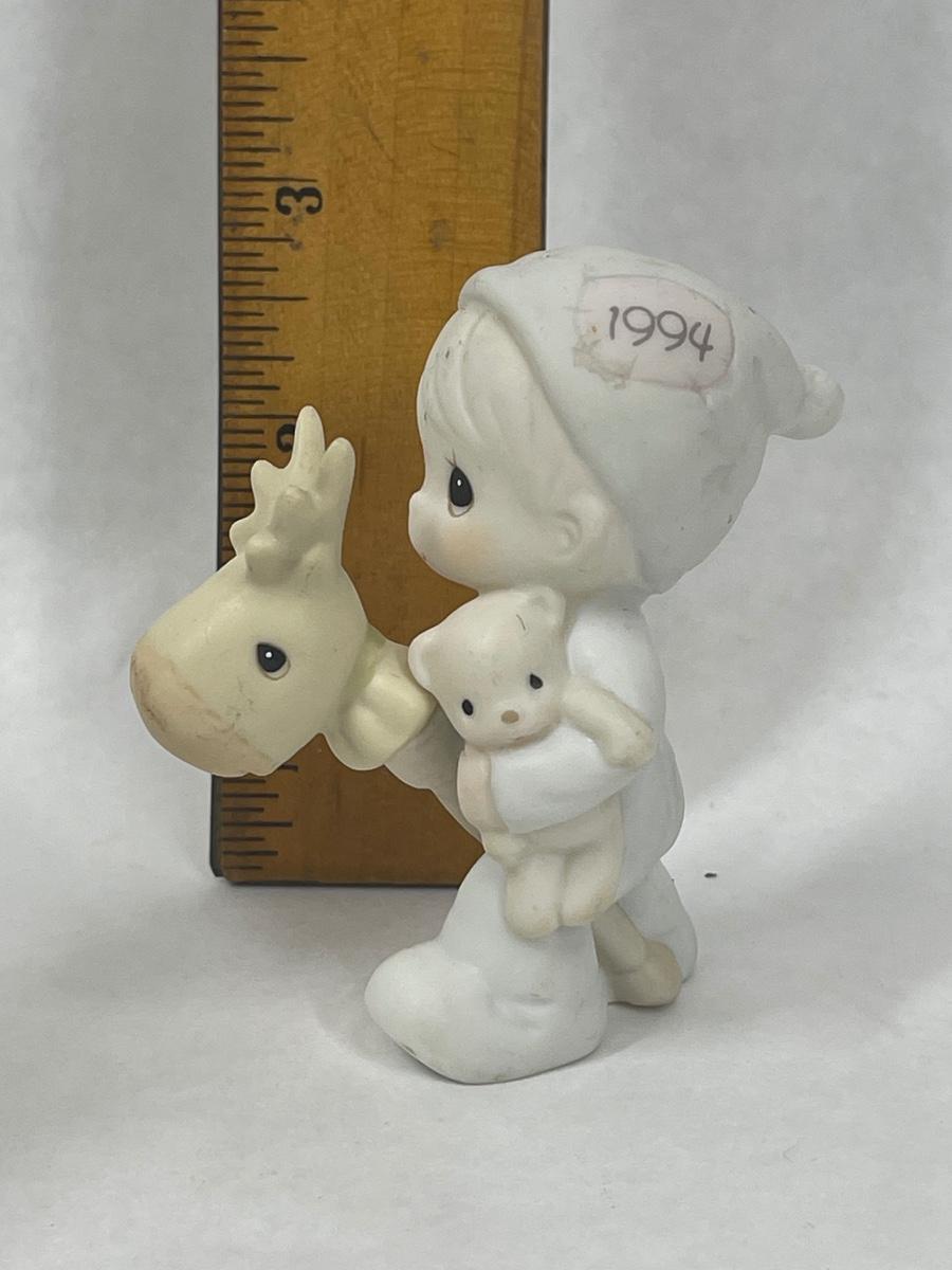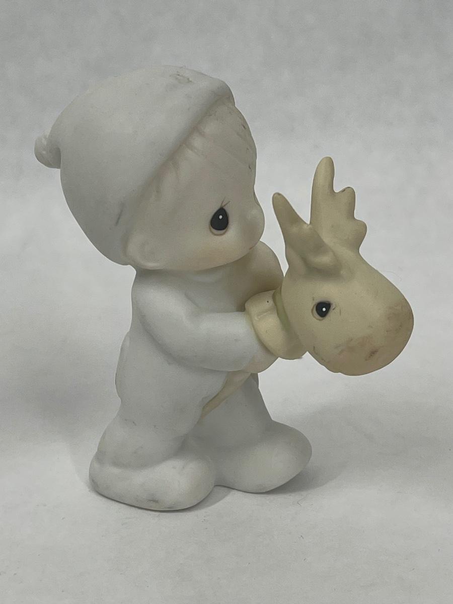 1994 Precious Moments Boy with Stick Reindeer and teddy bear