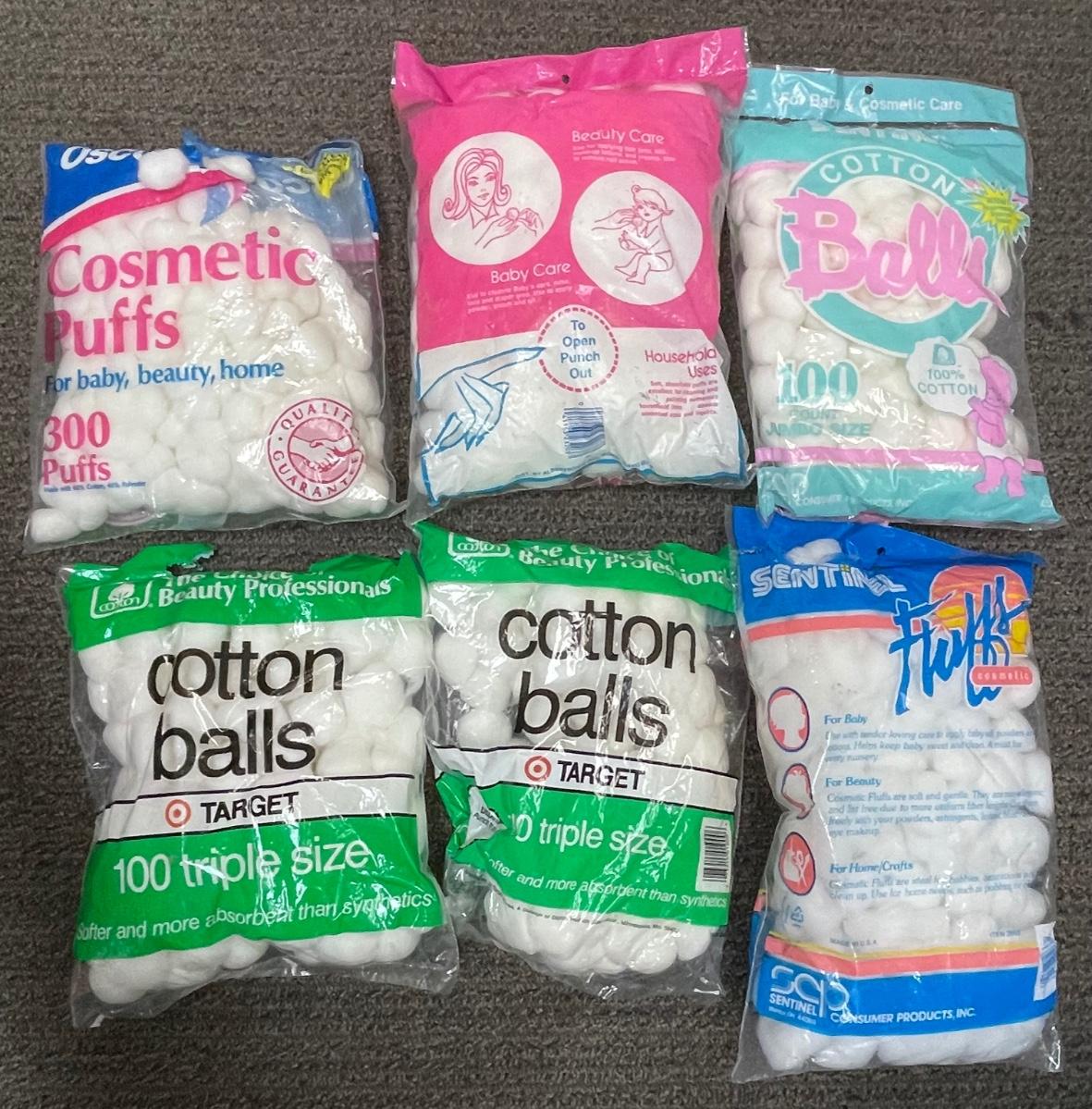 Vintage bags of Cotton Balls, 6 bags, sealed unknown age