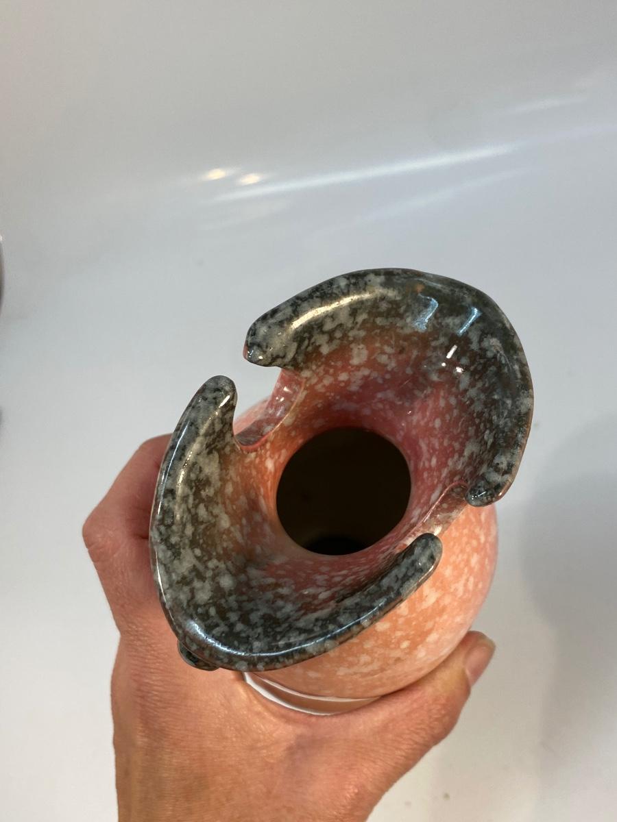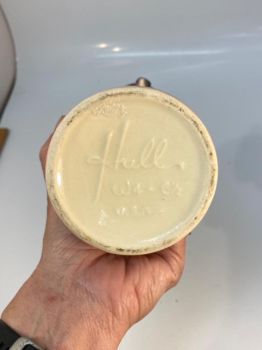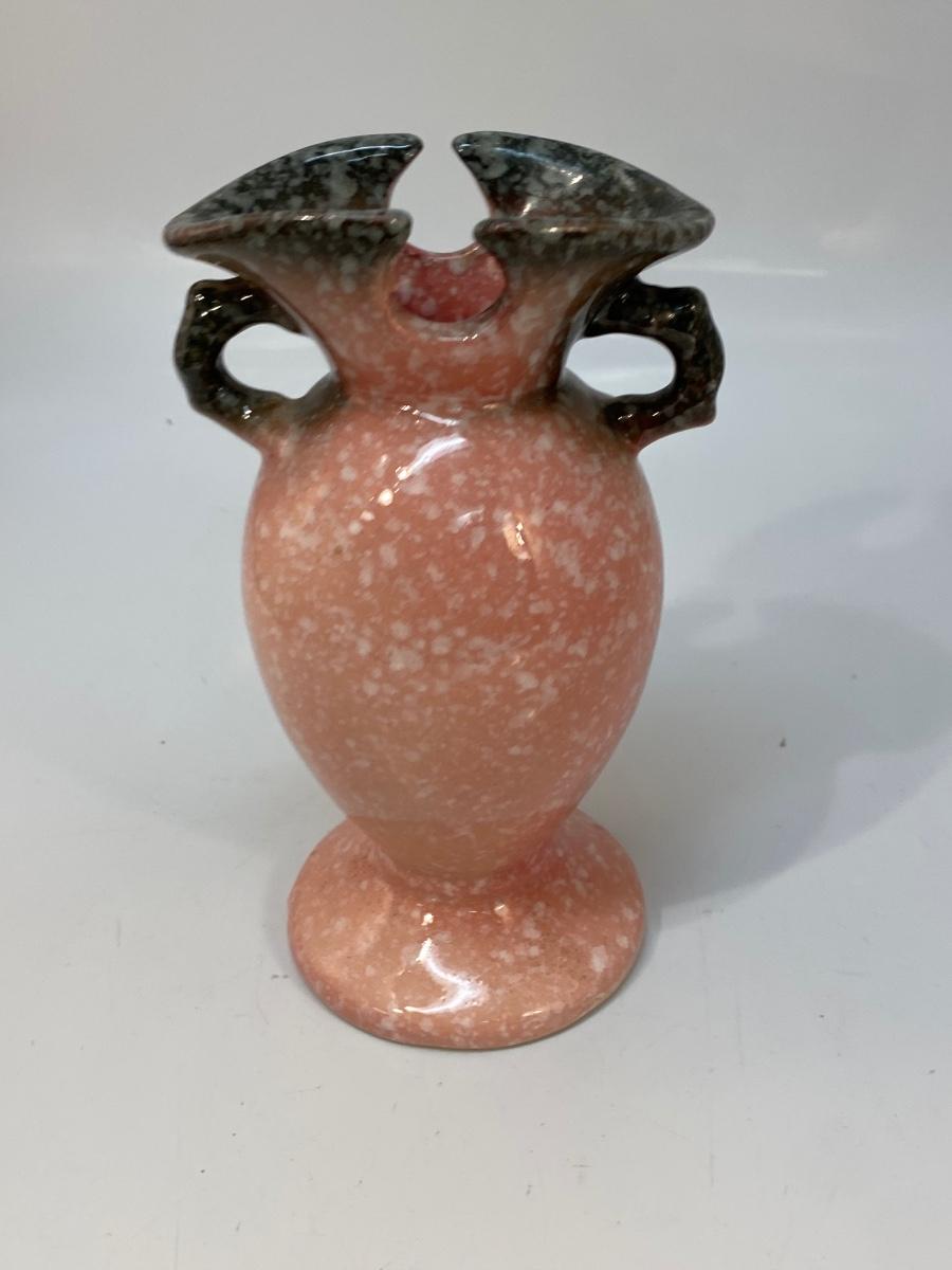 Vintage Pink & Grey Speckled Hull Pottery Vase Urn. In good vintage condition. No cracks, chips, or crazing noticed. Marked on the bottom. About 7" size.