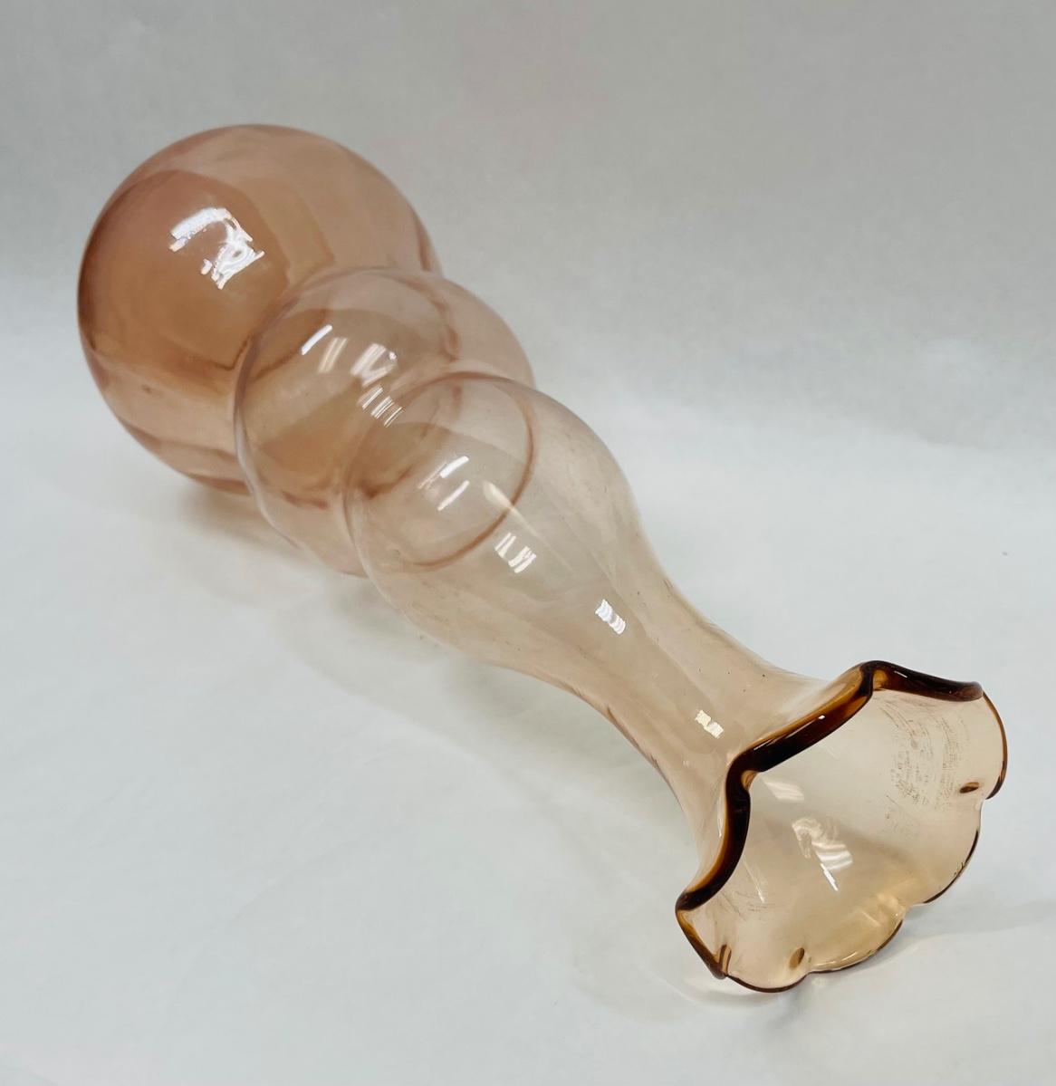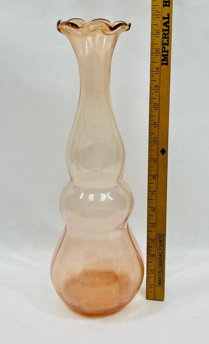 Vintage Blown Glass Vase, Peach, 17" tall