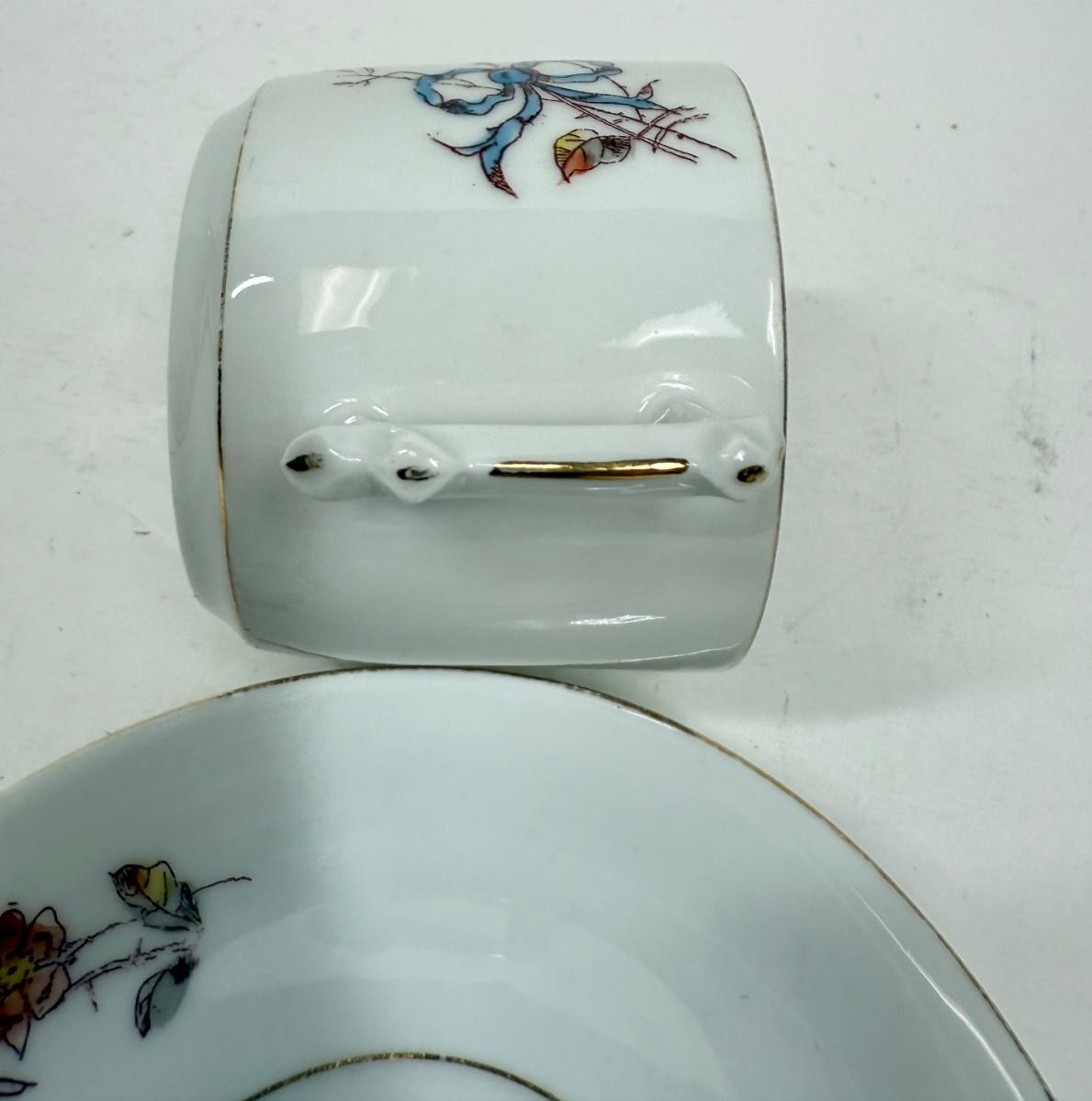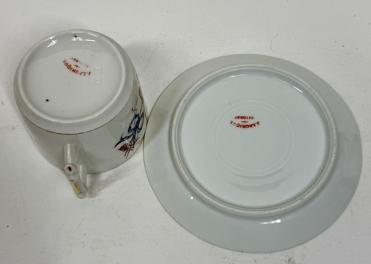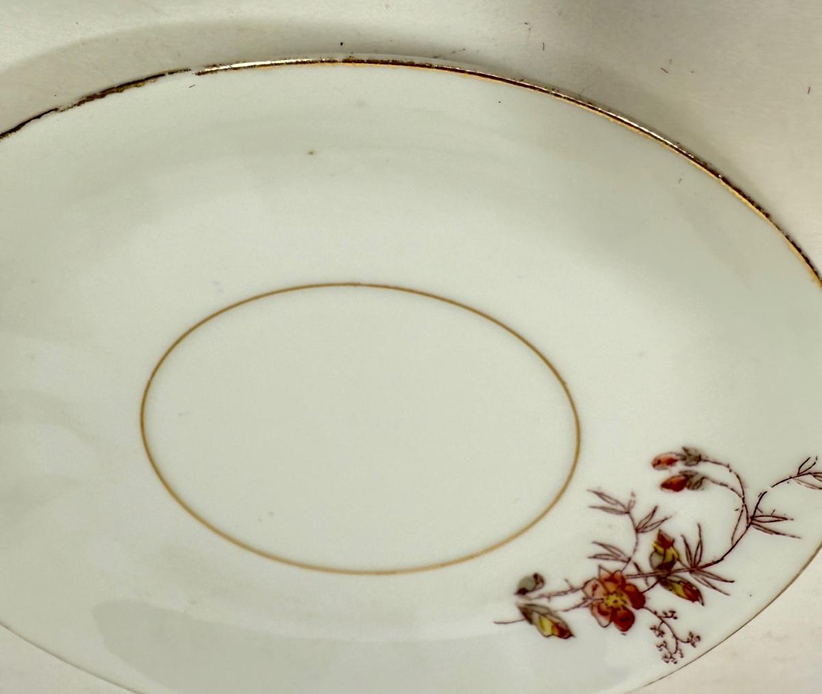 In good used condition, no chips or cracks, but gold leaf edge has some paint loss.