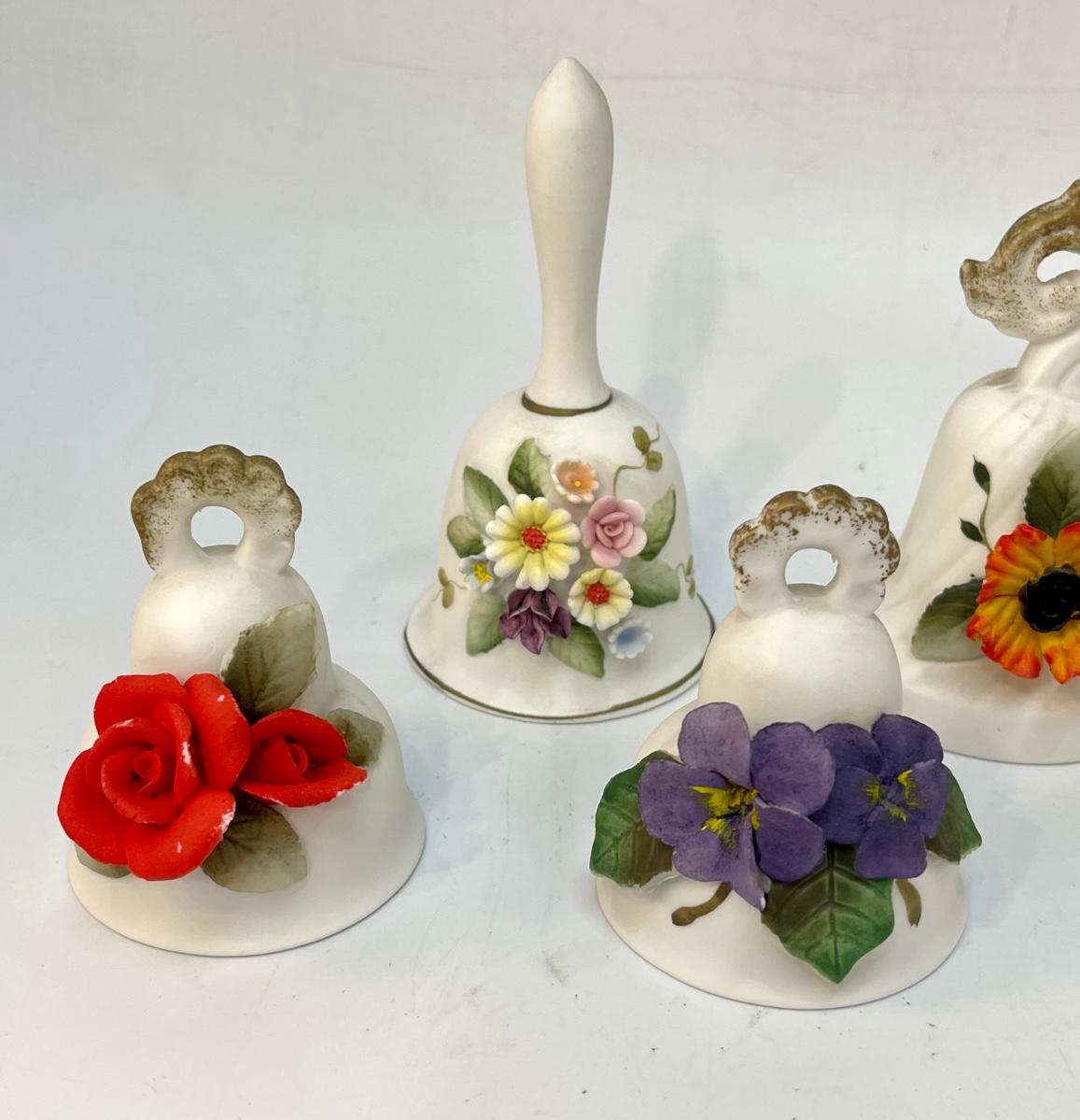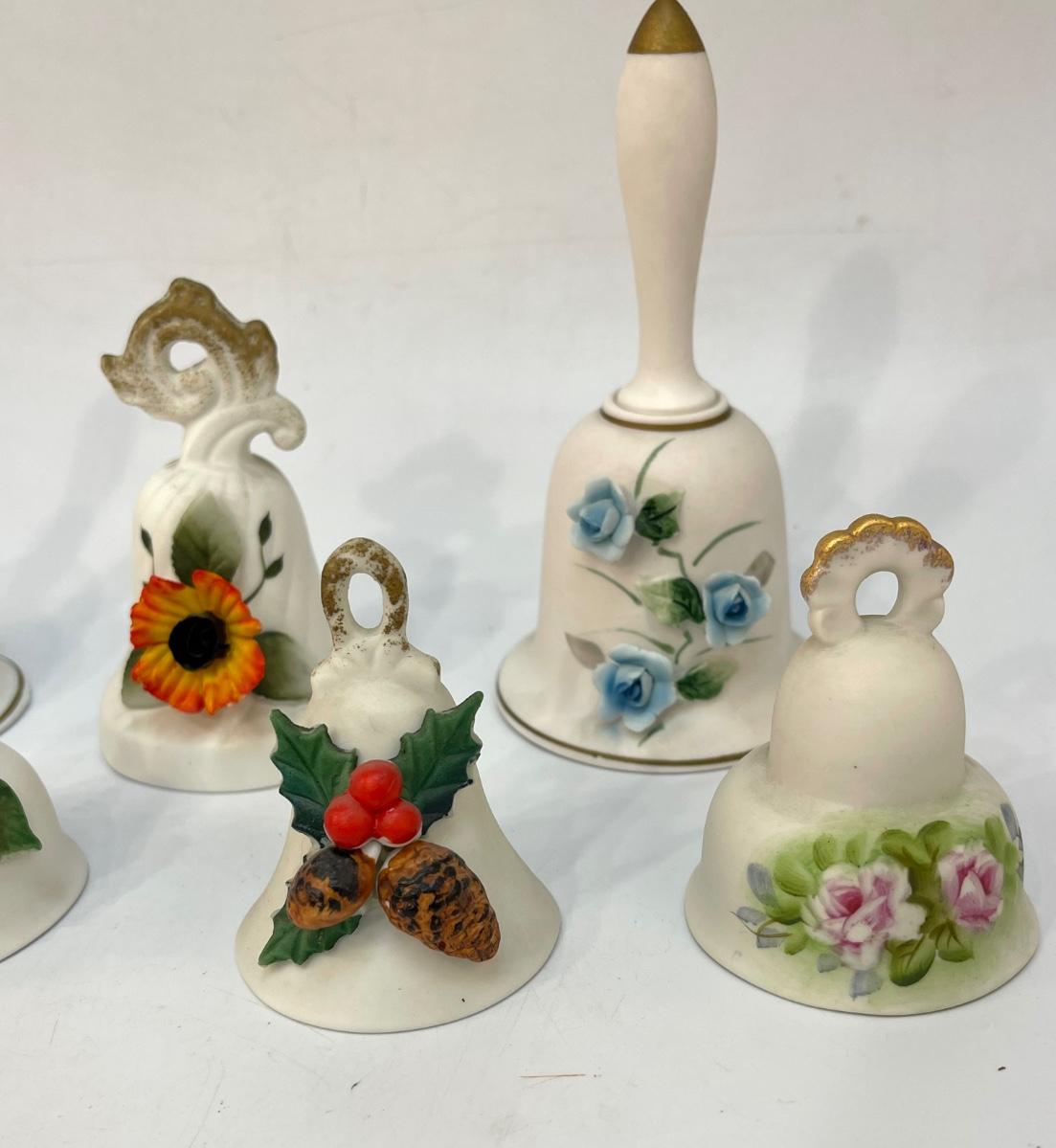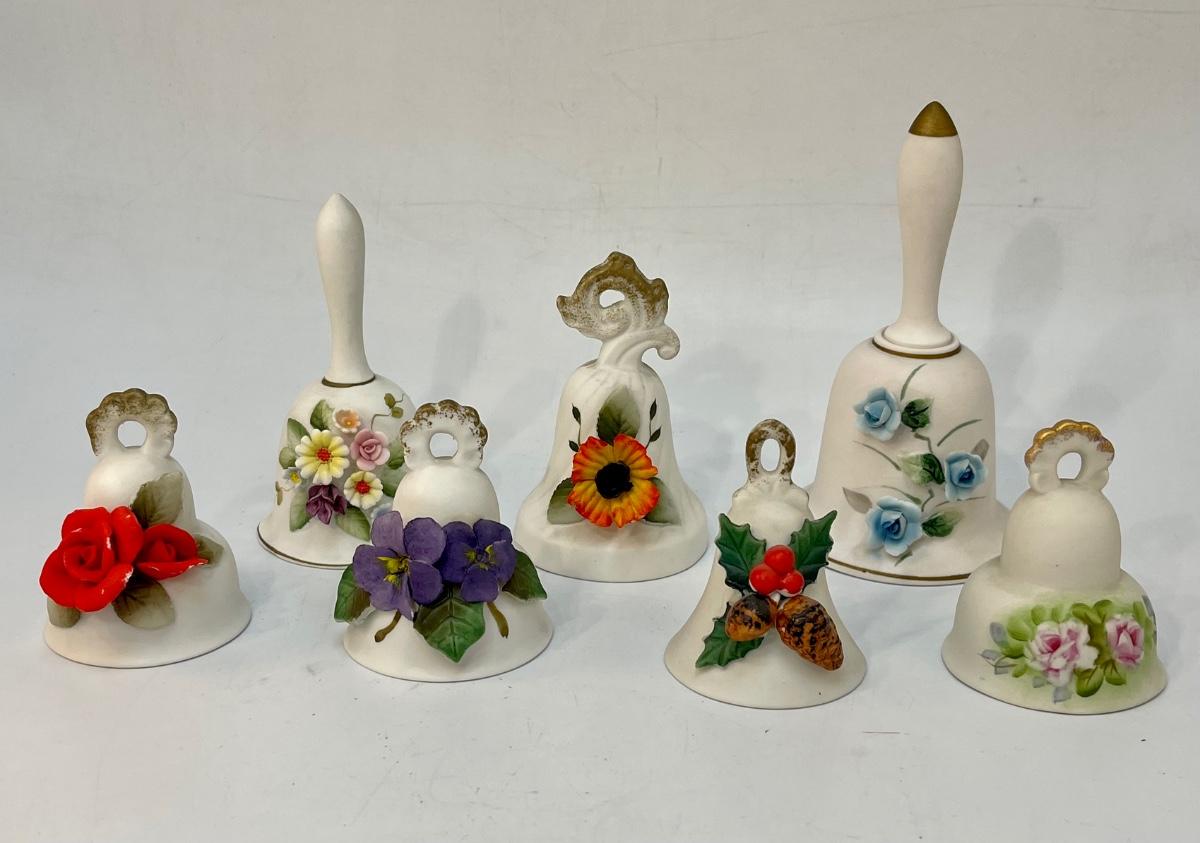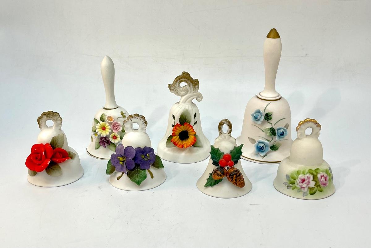 Lot of Ceramic Cottage Core Floral Flower Garden Trinket Bells