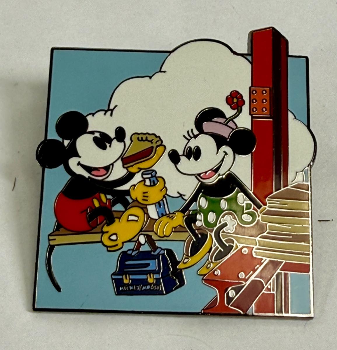 Disney pin Mickey and Minnie Mouse having a "Pie Lunch Break" design inspired by classic animated short "Building a Building".