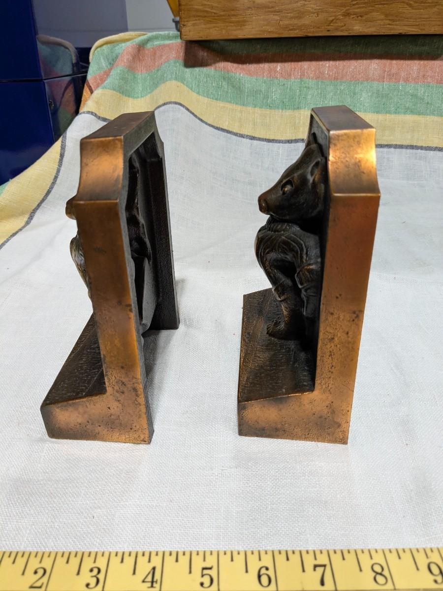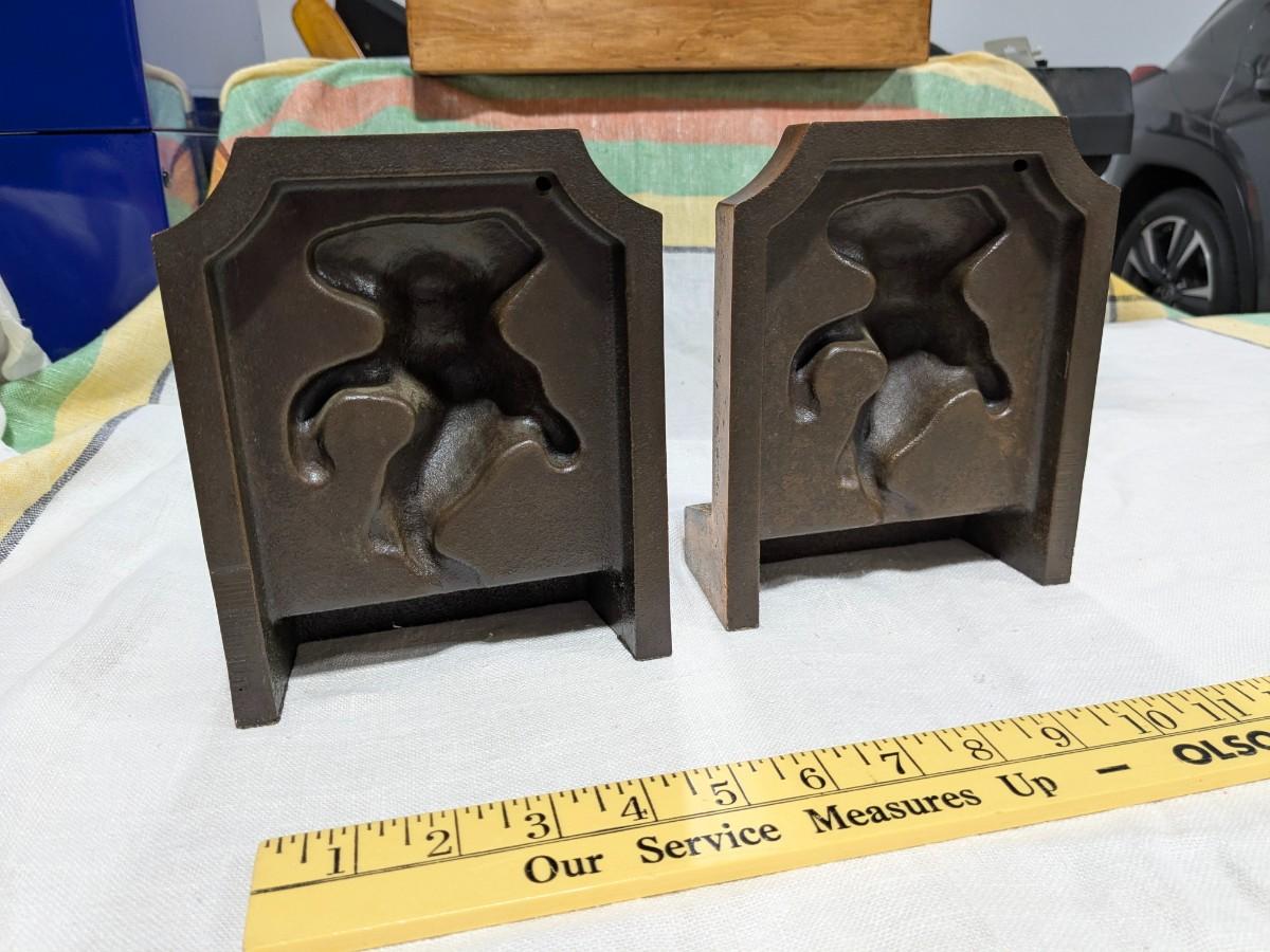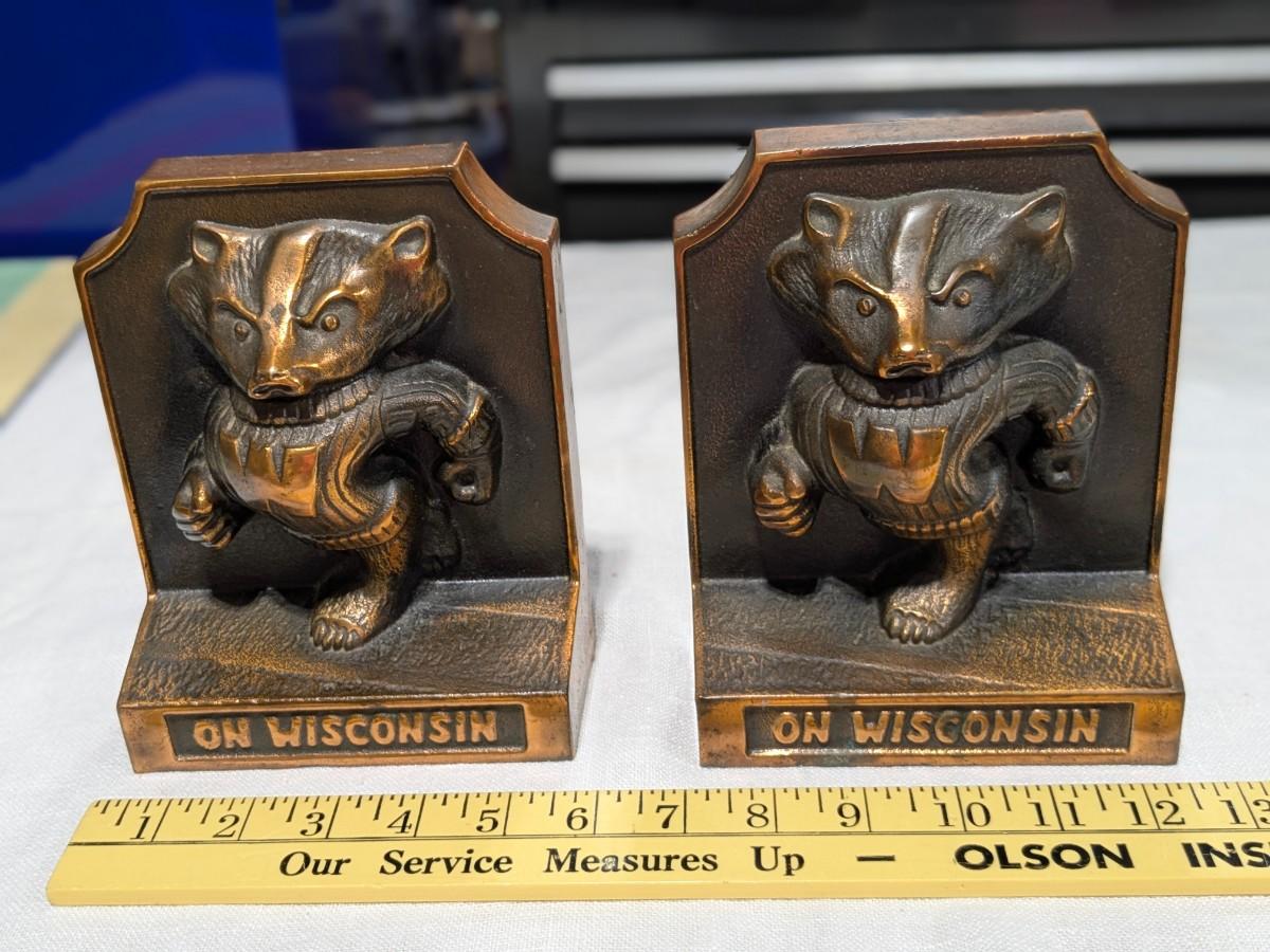 Solid cast iron UW Badger book ends with brass patina, beautiful.