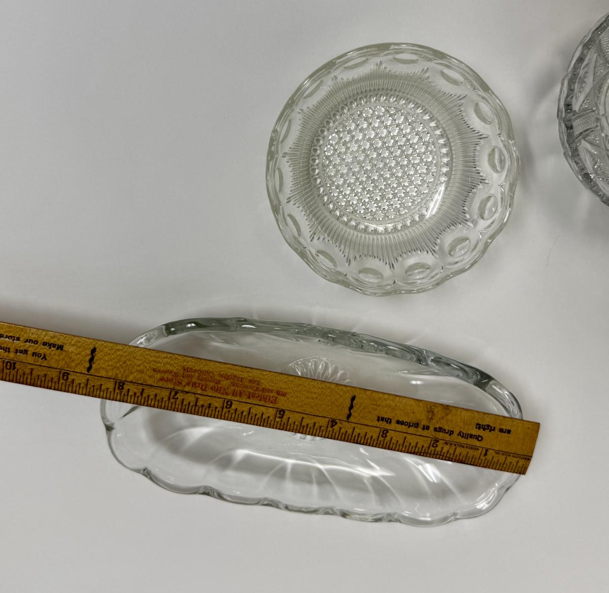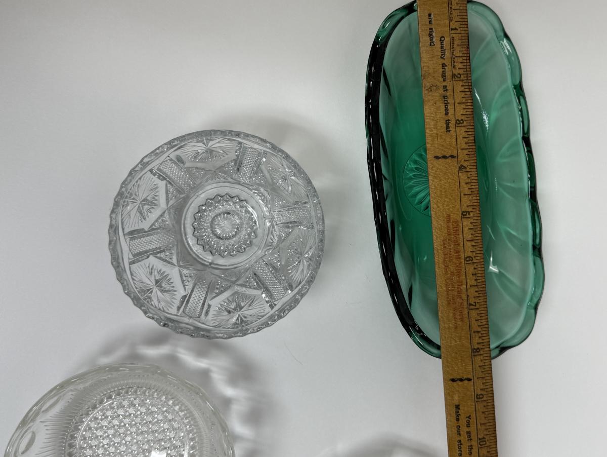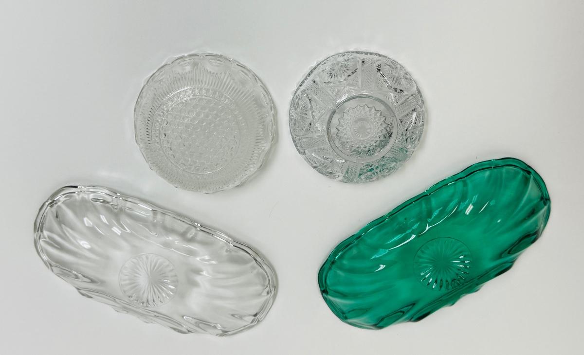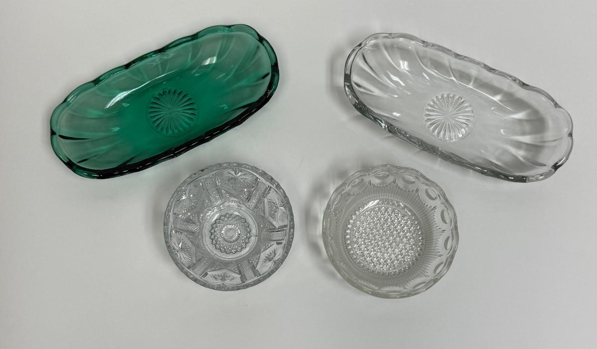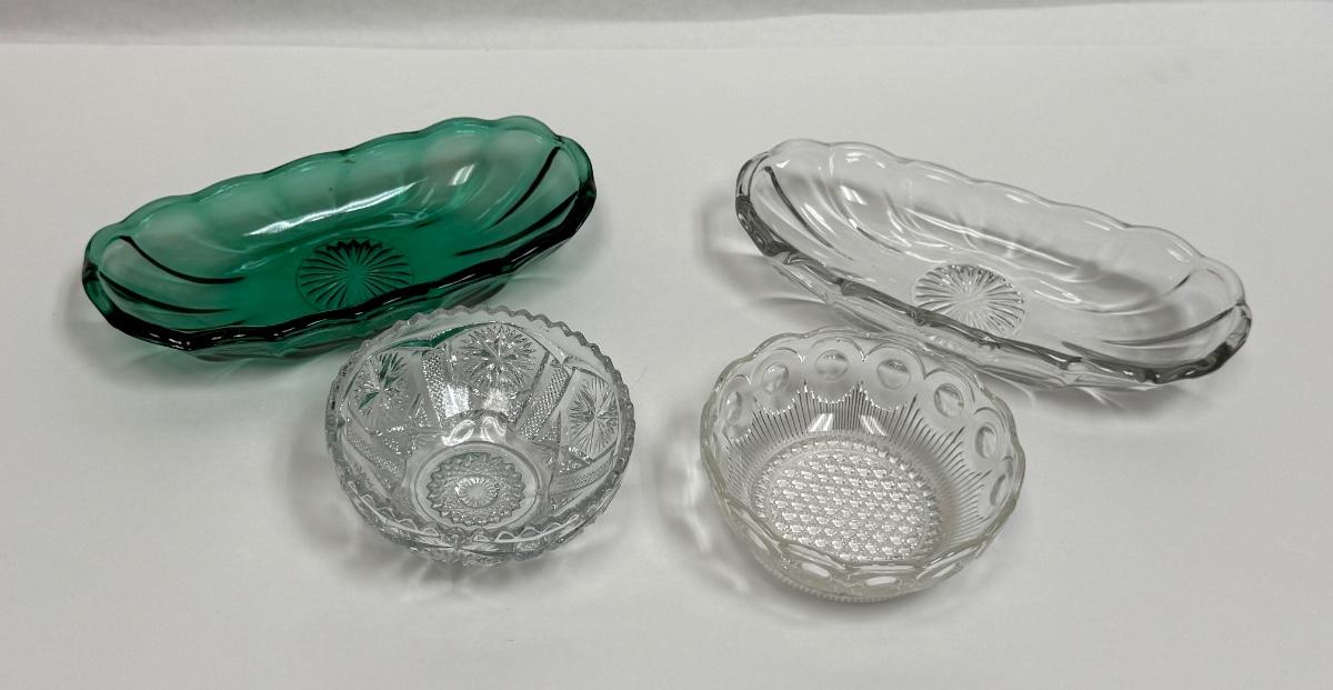 Lot of Vintage glass 3 clear dishes, 1 green dish