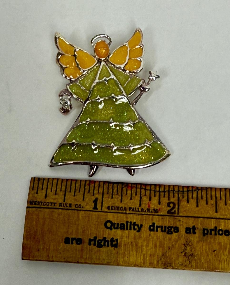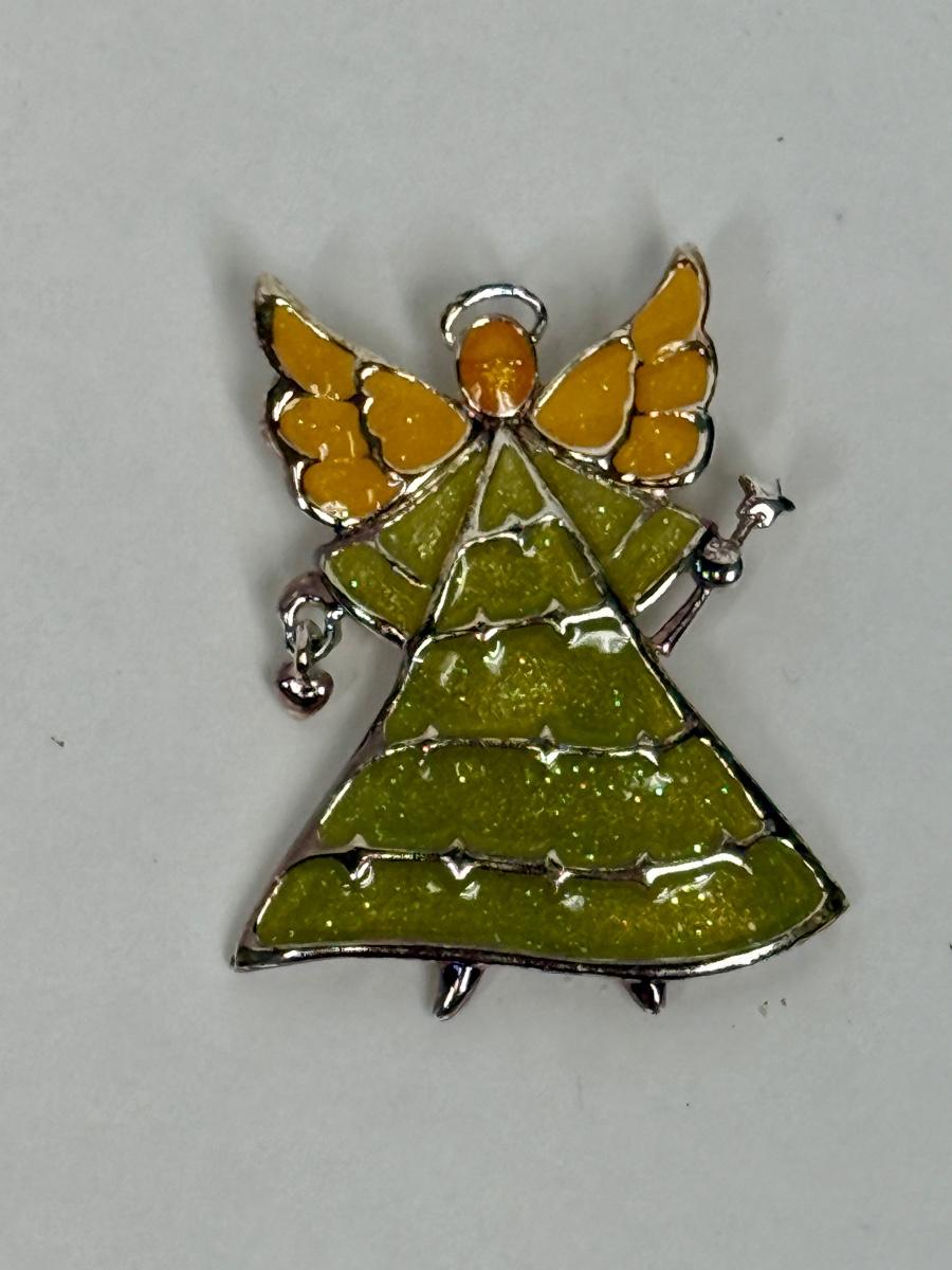Vintage Angel Pin Silver Brooch Enamel green & yellow