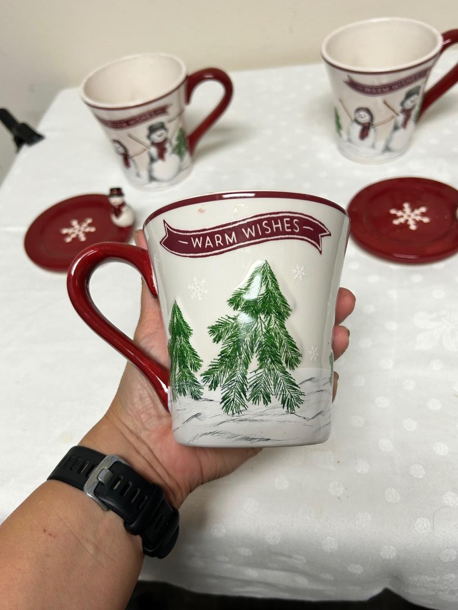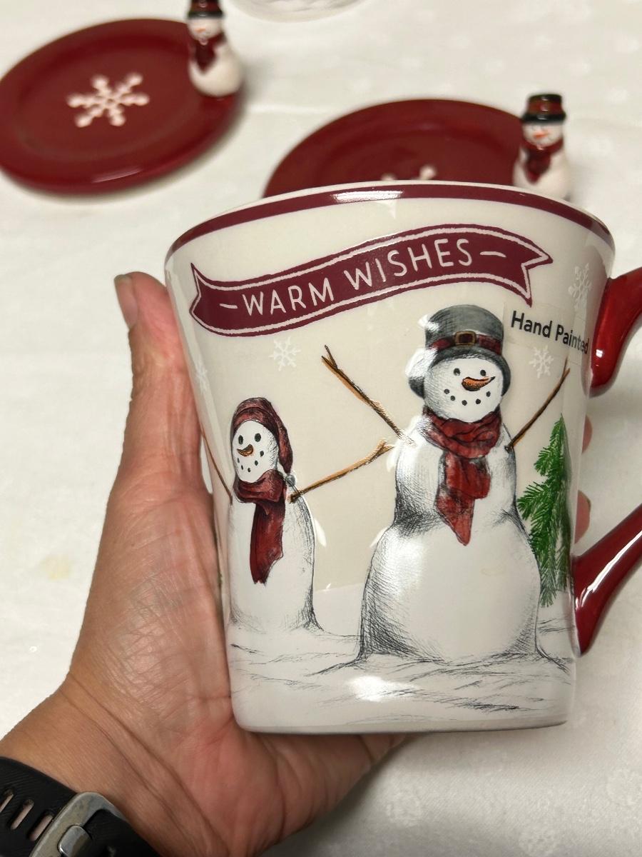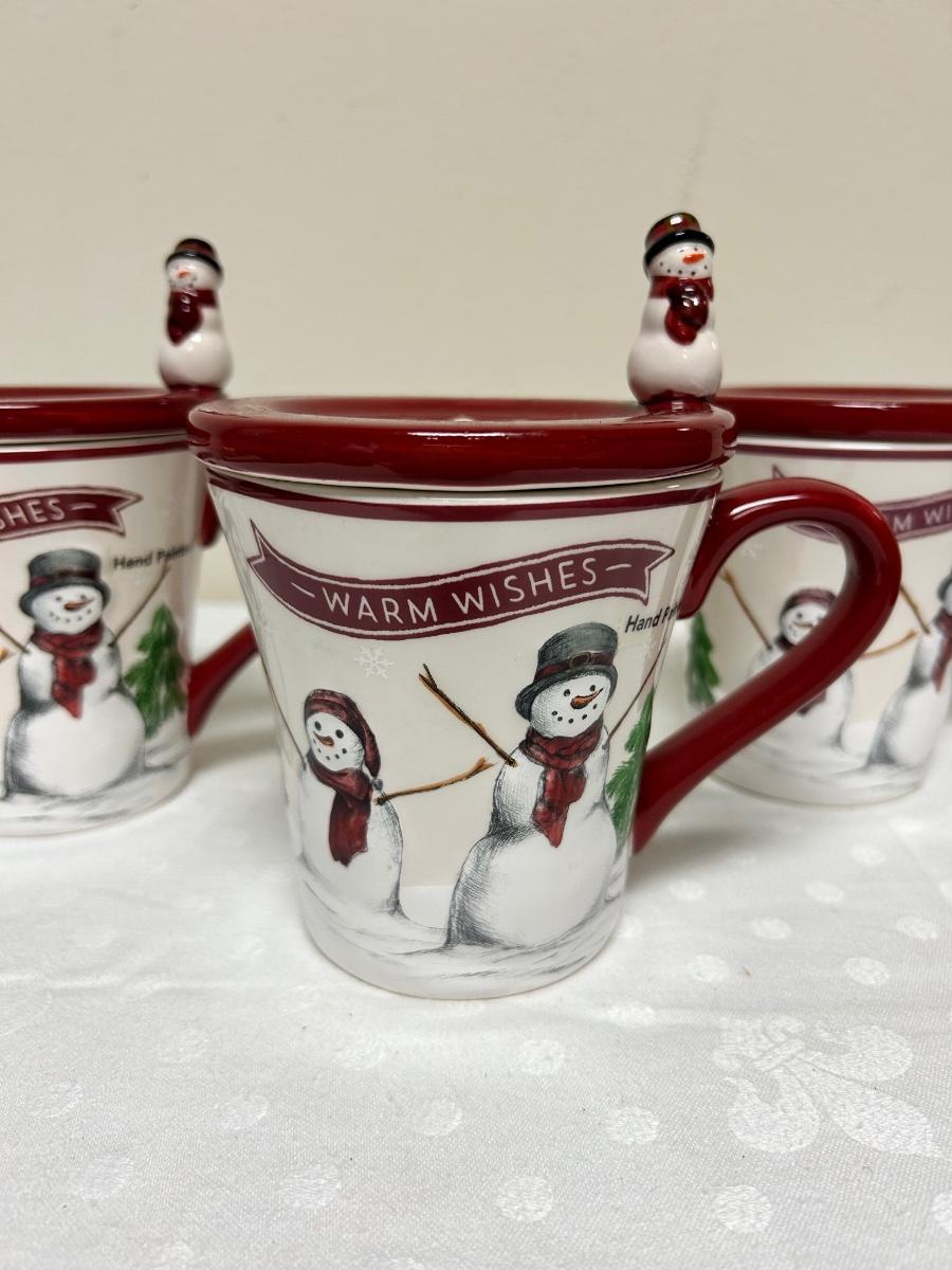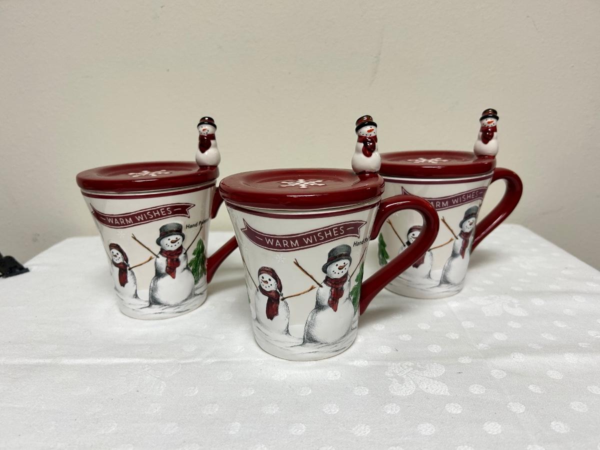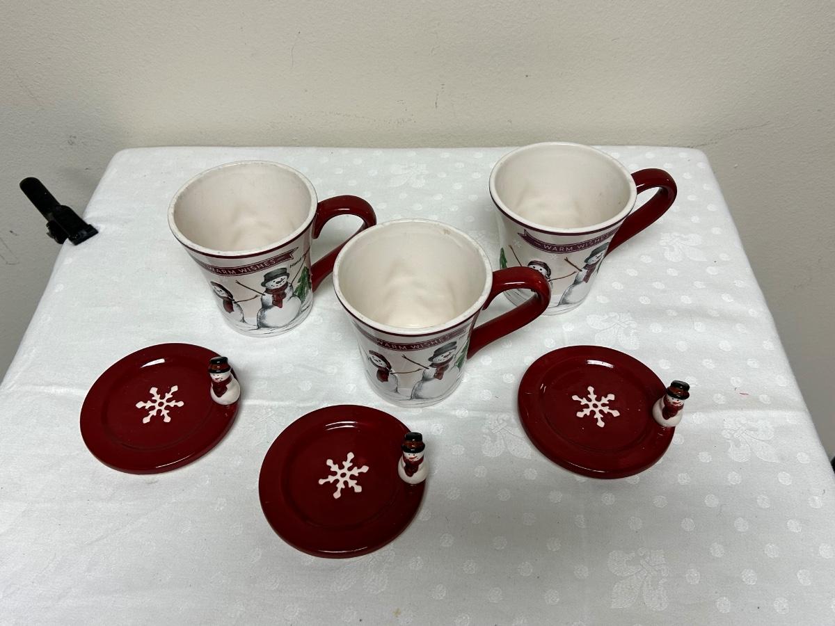 Set of Three Christmas Holiday Snowman Cocoa Mug Coffee Cups. In previously used condition.