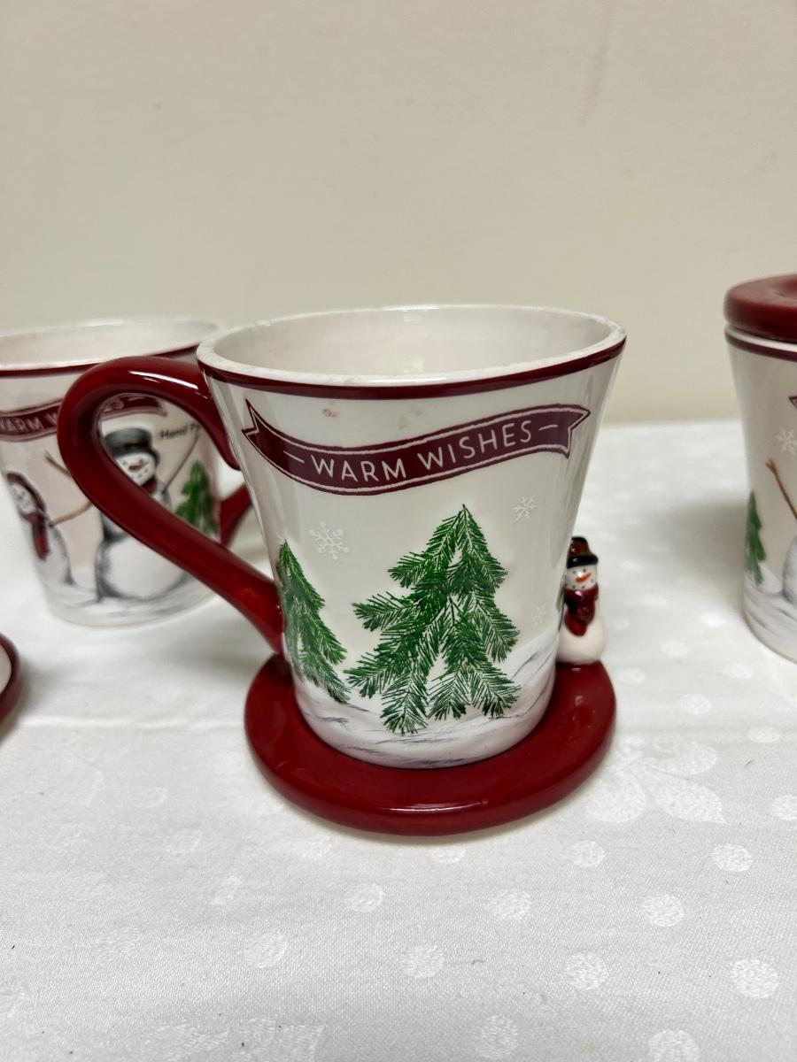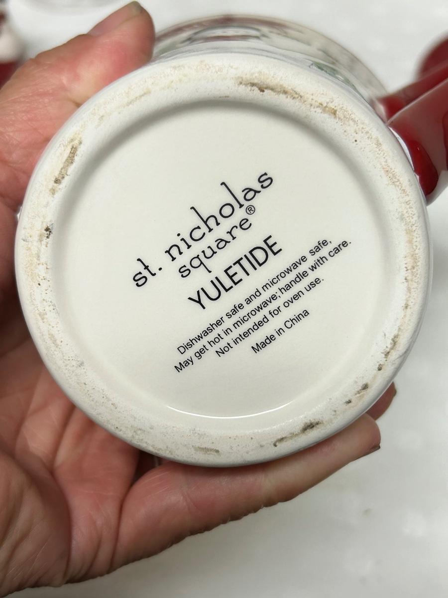 Set of Three St. Nicholas Square Yuletide Christmas Holiday Snowman Cocoa Mug Coffee Cups