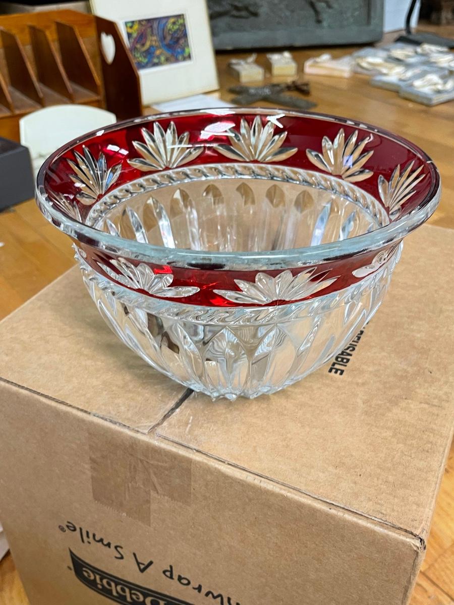 V intage Mikasa Crystal Celebrations Corinth Ruby Crystal Bowl with Cut to clear fan design