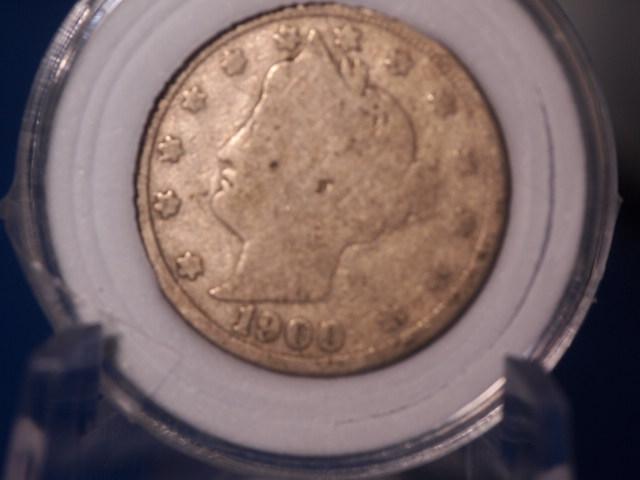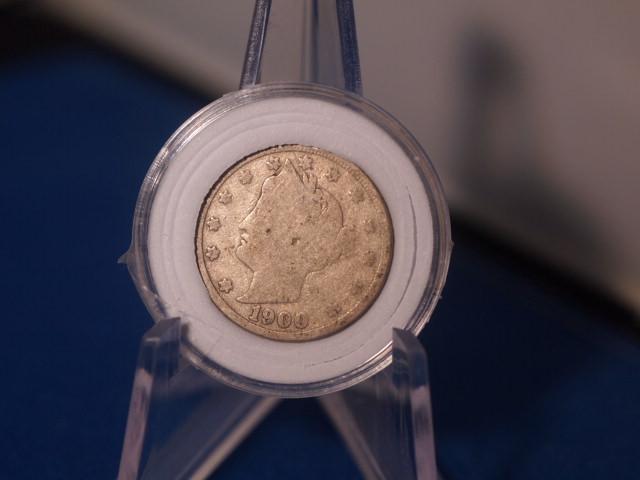 1900 V Nickel in Good condition in a coin holder