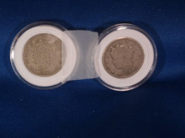 2 Nice old V nickels 1901, 1907