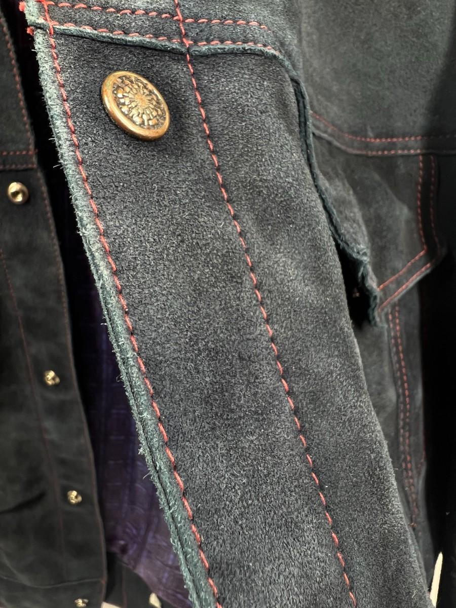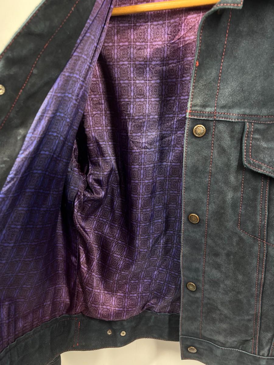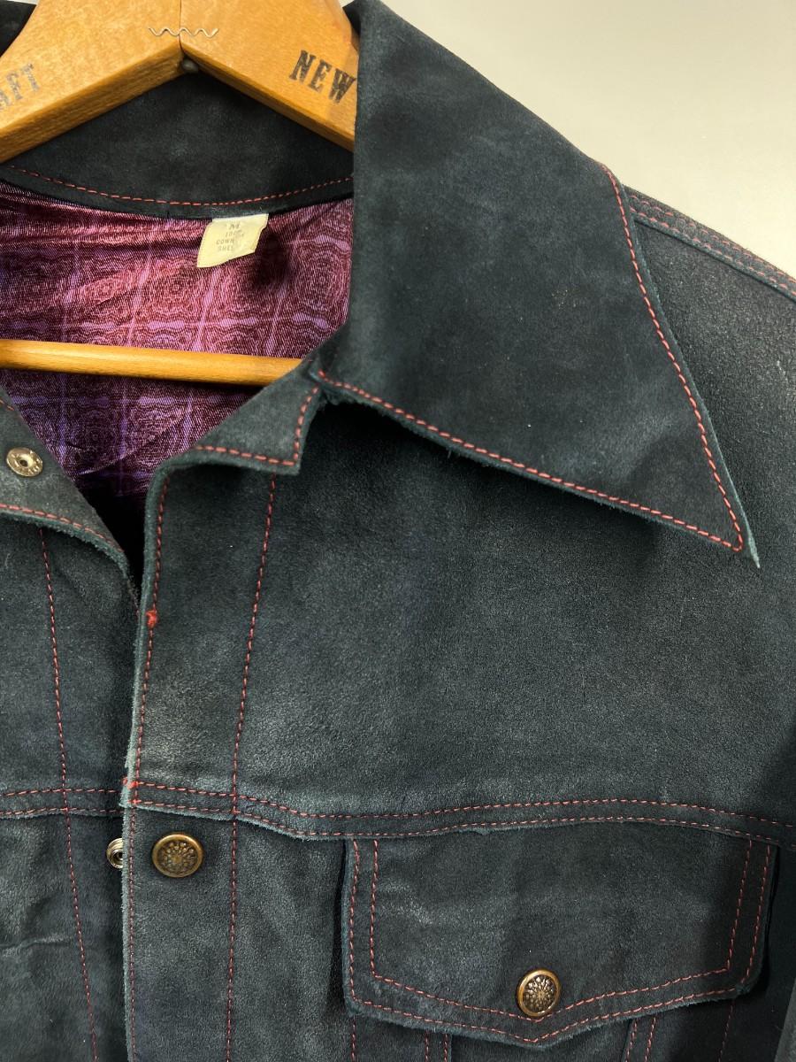 Vintage Medium Men's Cowhide Sheer Fabric Button Collared Jacket