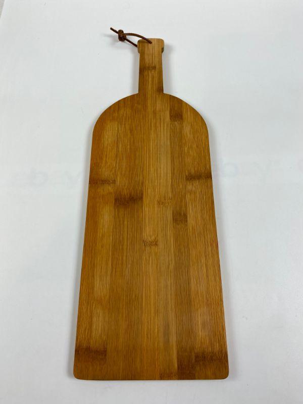 Beautiful wine bottle shaped bamboo wood serving tray that can be used time and time again.