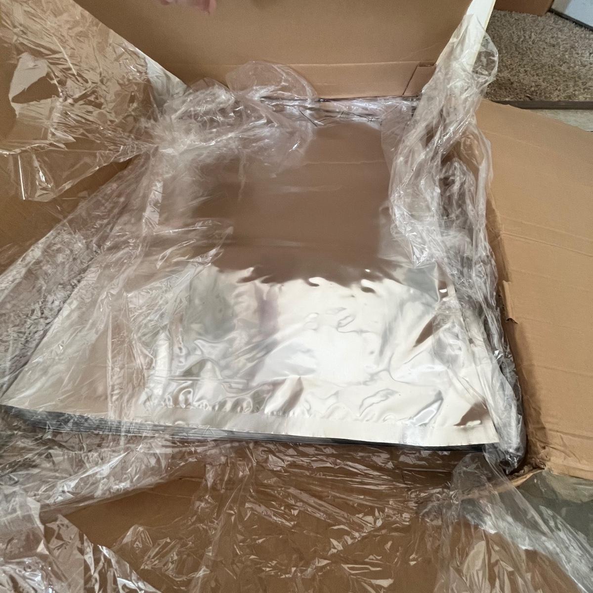 Lot includes two open boxes of large vacuum seal bags that measure 26” x 36”. Boxes appear to be at least half full and originally held 100 bags each.