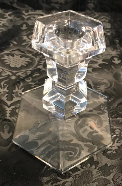 Description: Val St Lambert Crystal hexagonal candle stick. Measurement approximate: 5 H X 2 W X 4.25 D. Material: Crystal. Shipping cost: $15 Excluding California, Alaska & Hawaii.