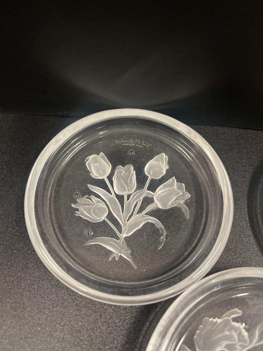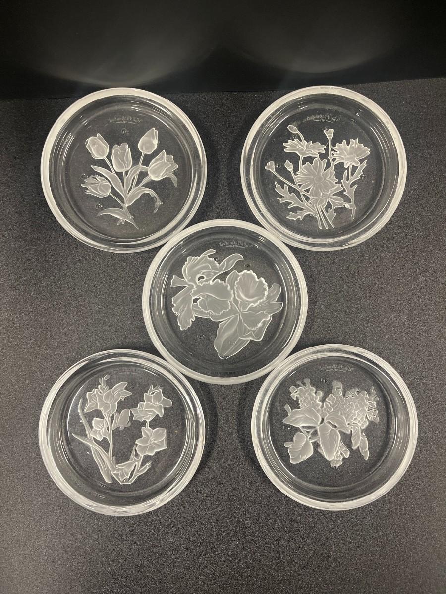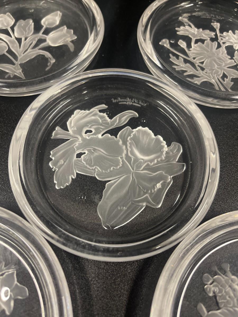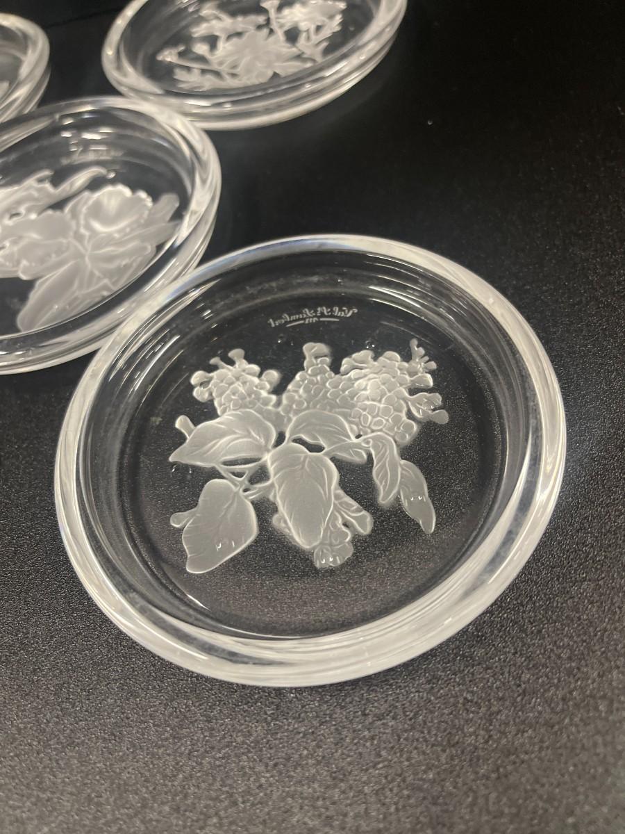 Val St. Lambert Intaglio Crystal Coasters, Set of 6