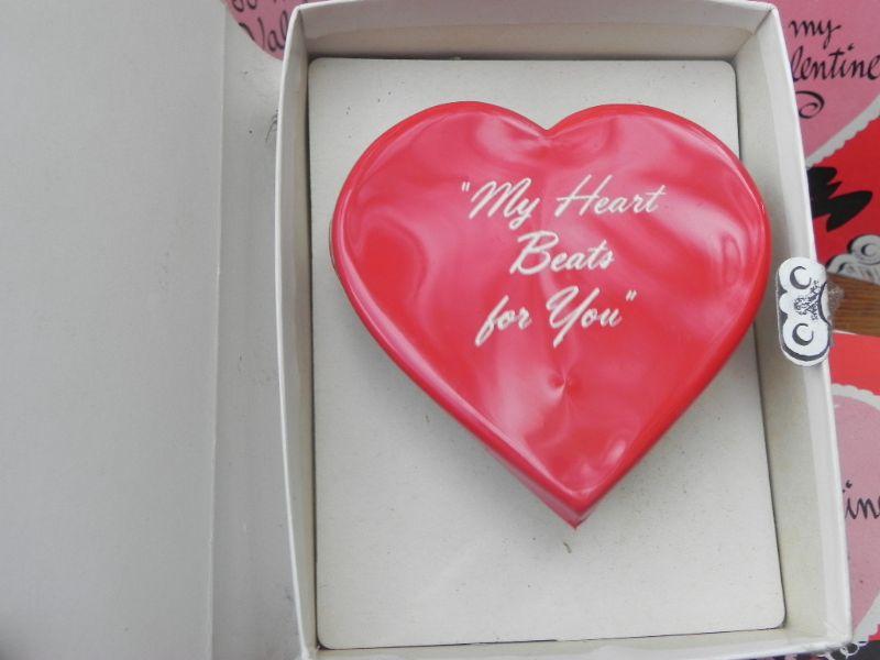 WHEN YOU OPEN THIS VALENTINE BOX THE PLASTIC HEART INSIDE MOVES LIKE A BEATING HEART (IF THE BATTERY ISN'T DEAD)