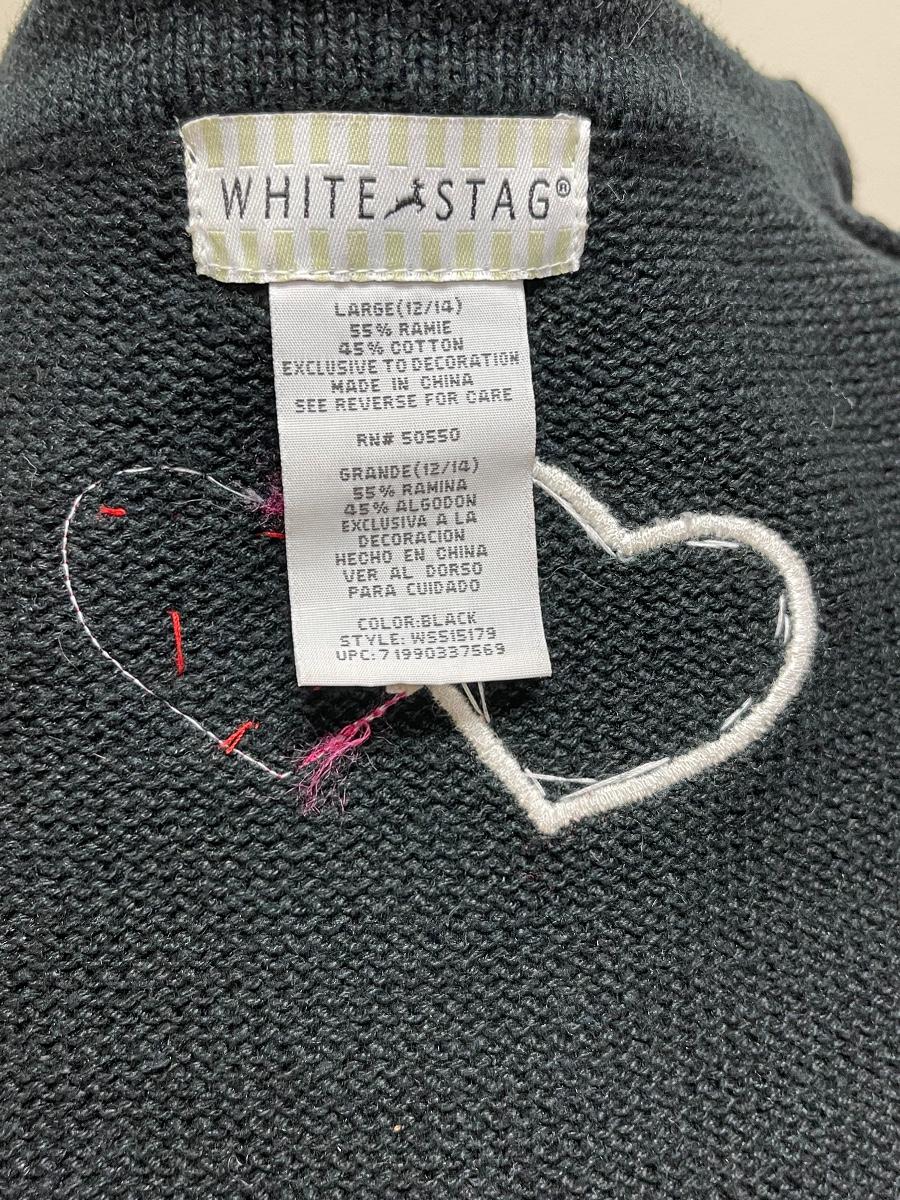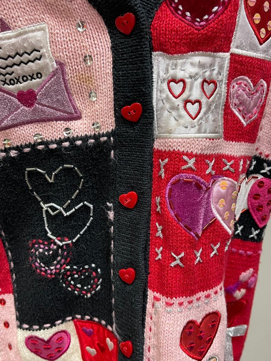 Item is in great condition. The buttons are shaped like hearts. This shirt comes in a size large and it is made in China.