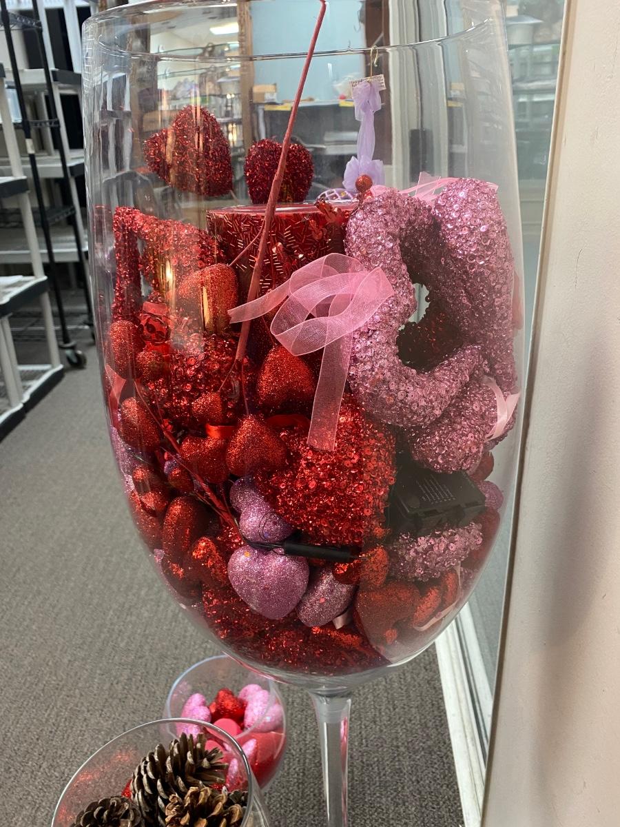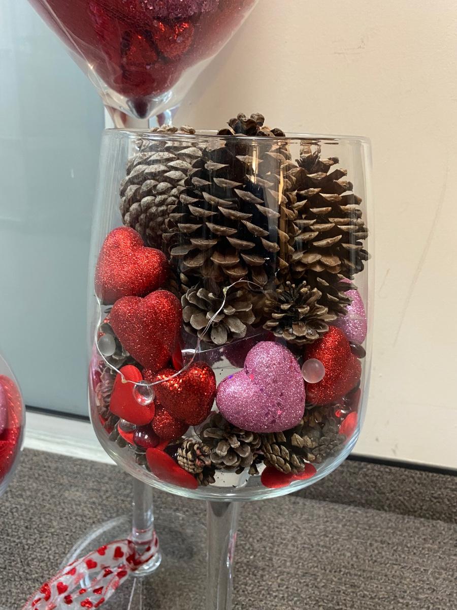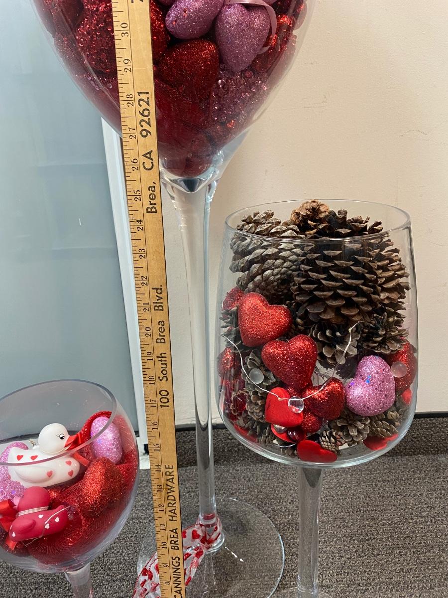 Valentine’s Day Romantic Heart Filled Oversized Glass Stemware Wine Glasses Goblets Holiday Seasonal Decor