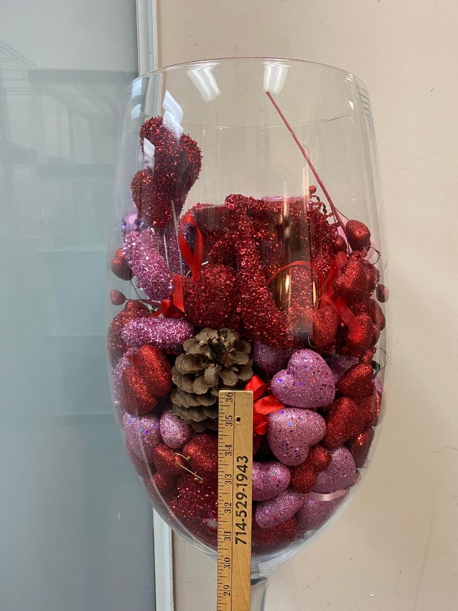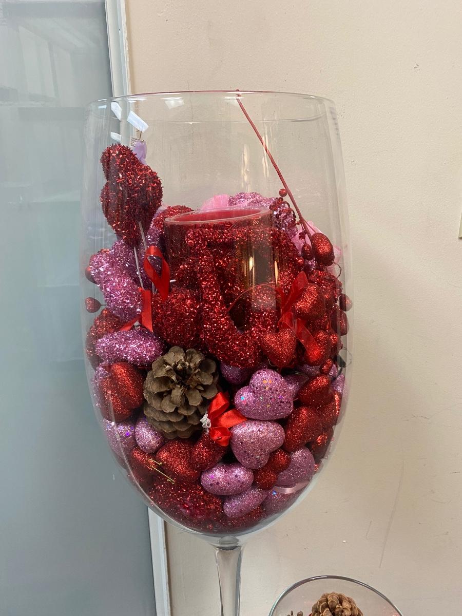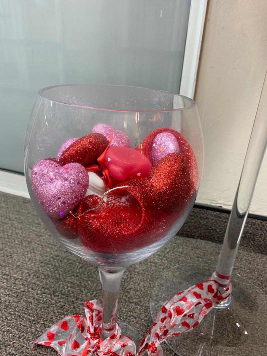 Valentine’s Day Romantic Heart Filled Oversized Glass Stemware Wine Glasses Goblets Holiday Seasonal Decor