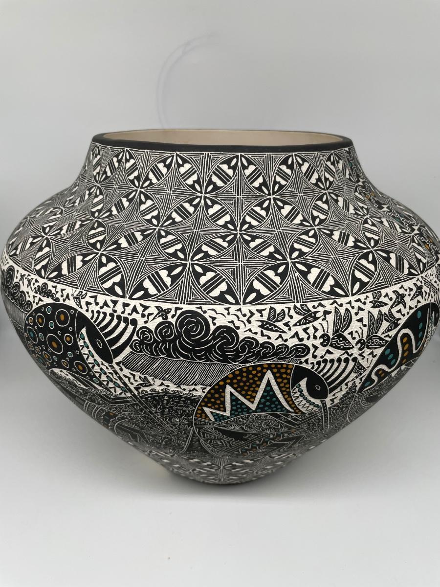 Exquisite 11" tall vase; 8" opening; 14" at widest point; One small chip at bottom (see pics)