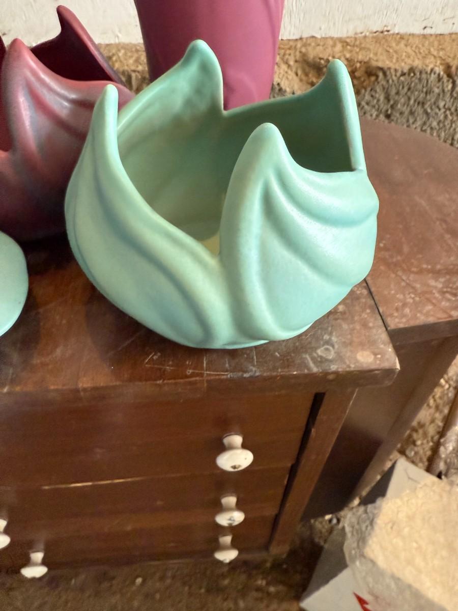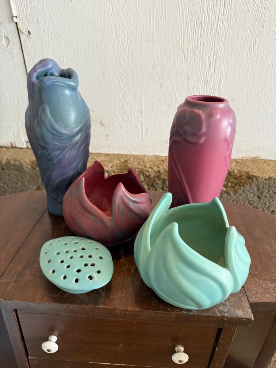 Van Briggle Pottery Lot: A stunning collection of Van Briggle pottery, known for its artistic glaze and unique designs. A must-have for pottery enthusiasts and collectors alike!