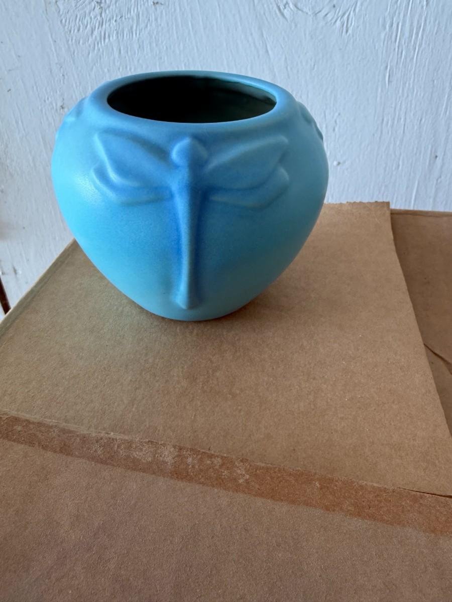 Van Briggle Pottery Turquoise Blue Dragonfly Pot A1 CCII