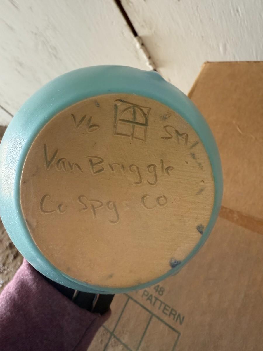 Van Briggle Pottery Turquoise Blue Dragonfly Pot A1 CCII: This charming turquoise dragonfly pot, handcrafted by Van Briggle, is a perfect blend of functionality and stunning design.