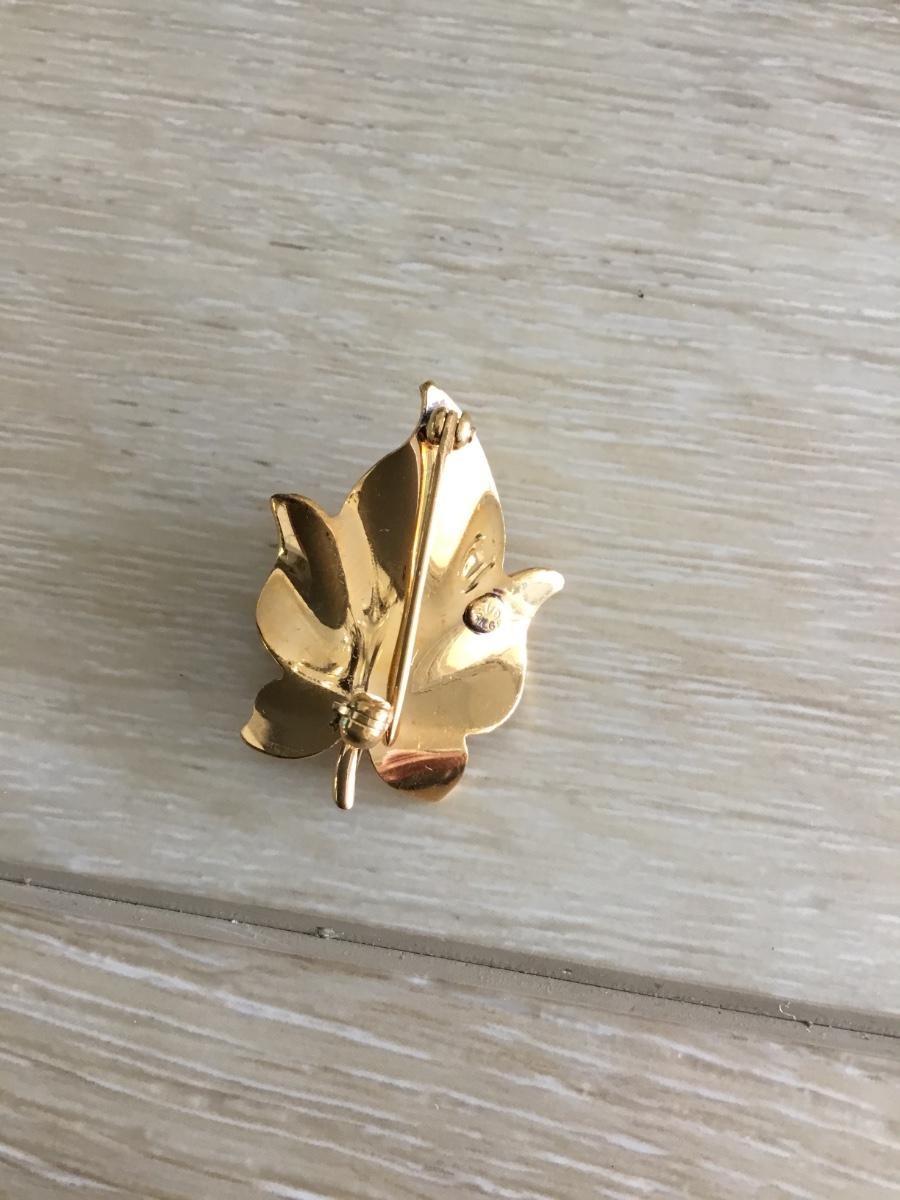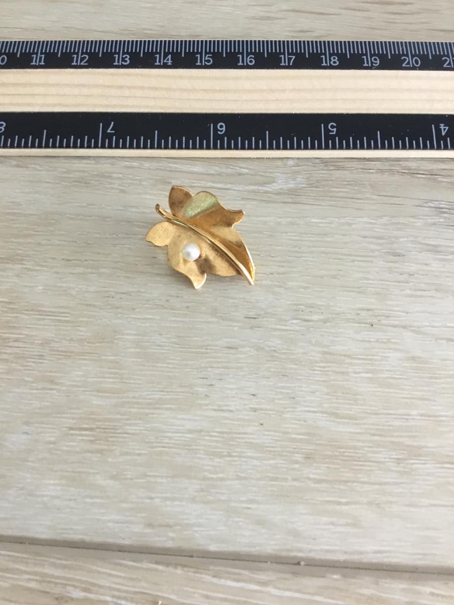 Van Dell gold filled with pearl leaf vintage brooch