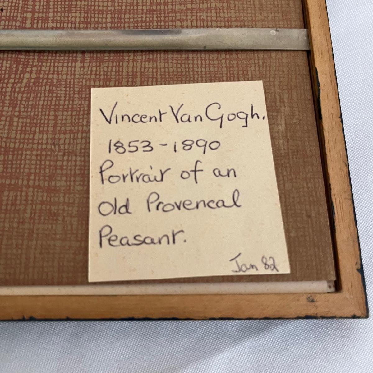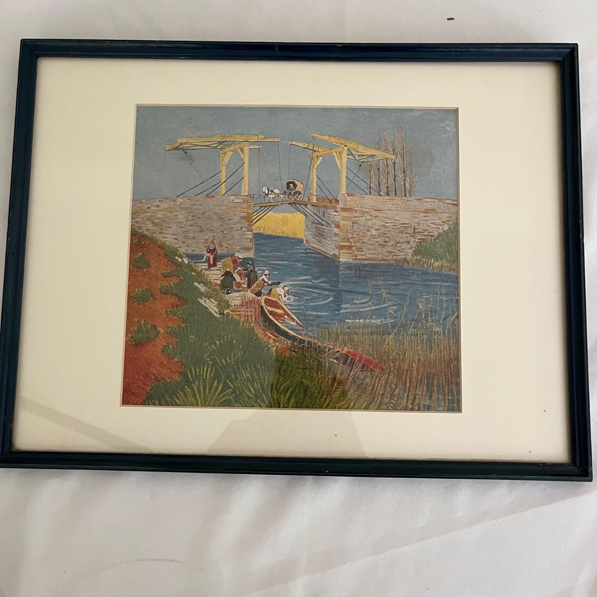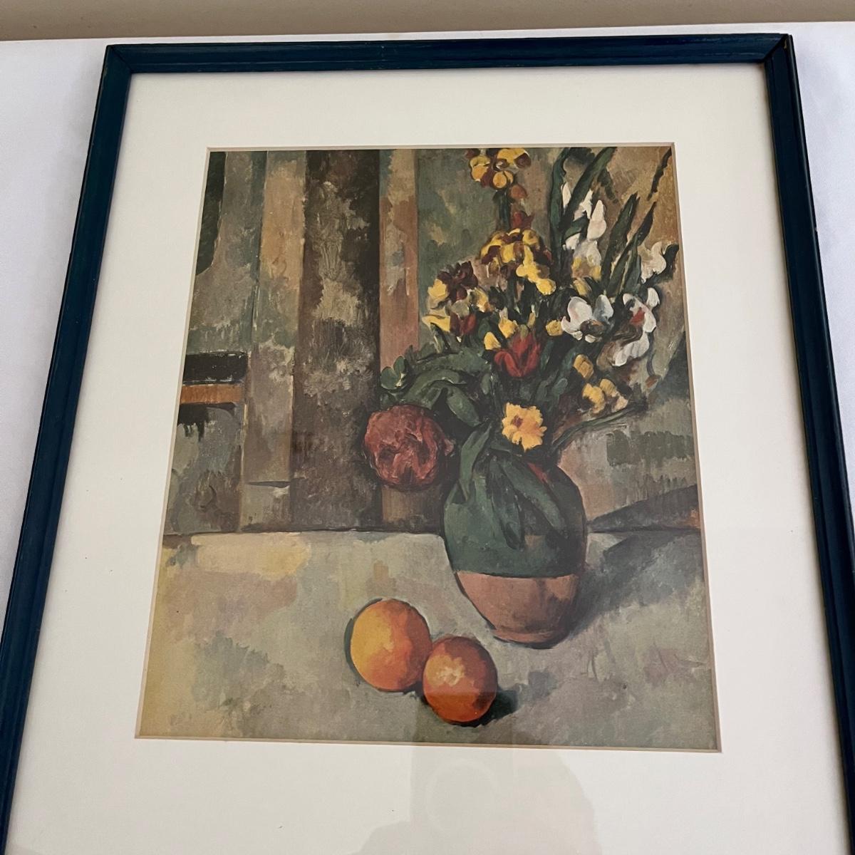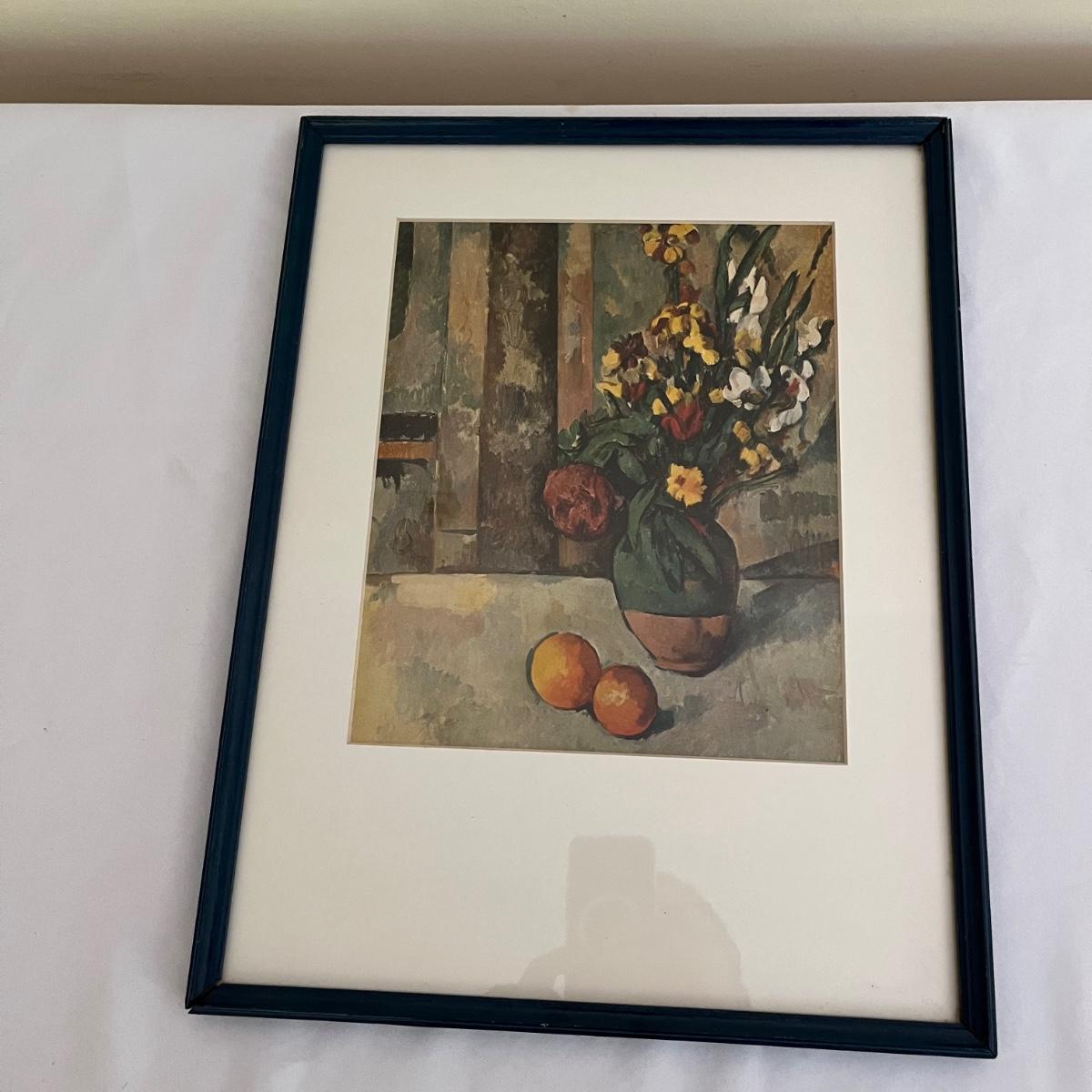Lot includes three wooden framed and matted art prints. Two are by Vincent Van Gogh and one by Paul Cèzanne. Frames measure 12” x 16”.