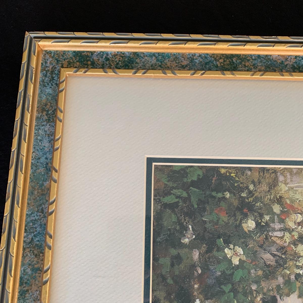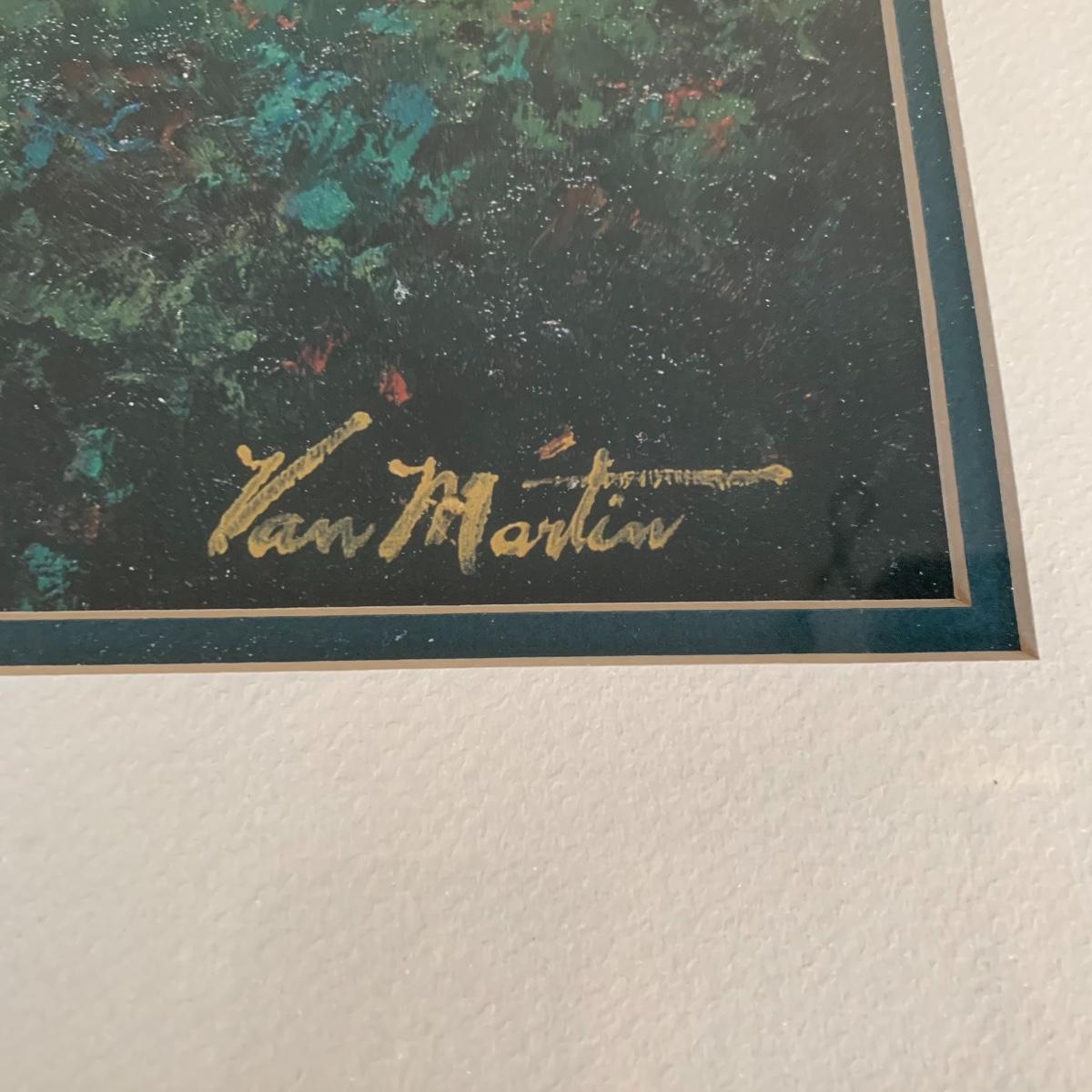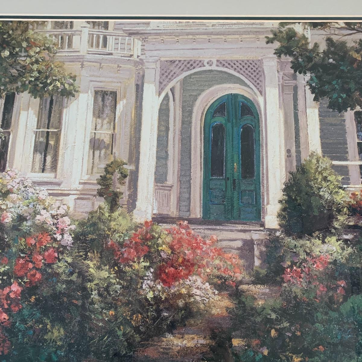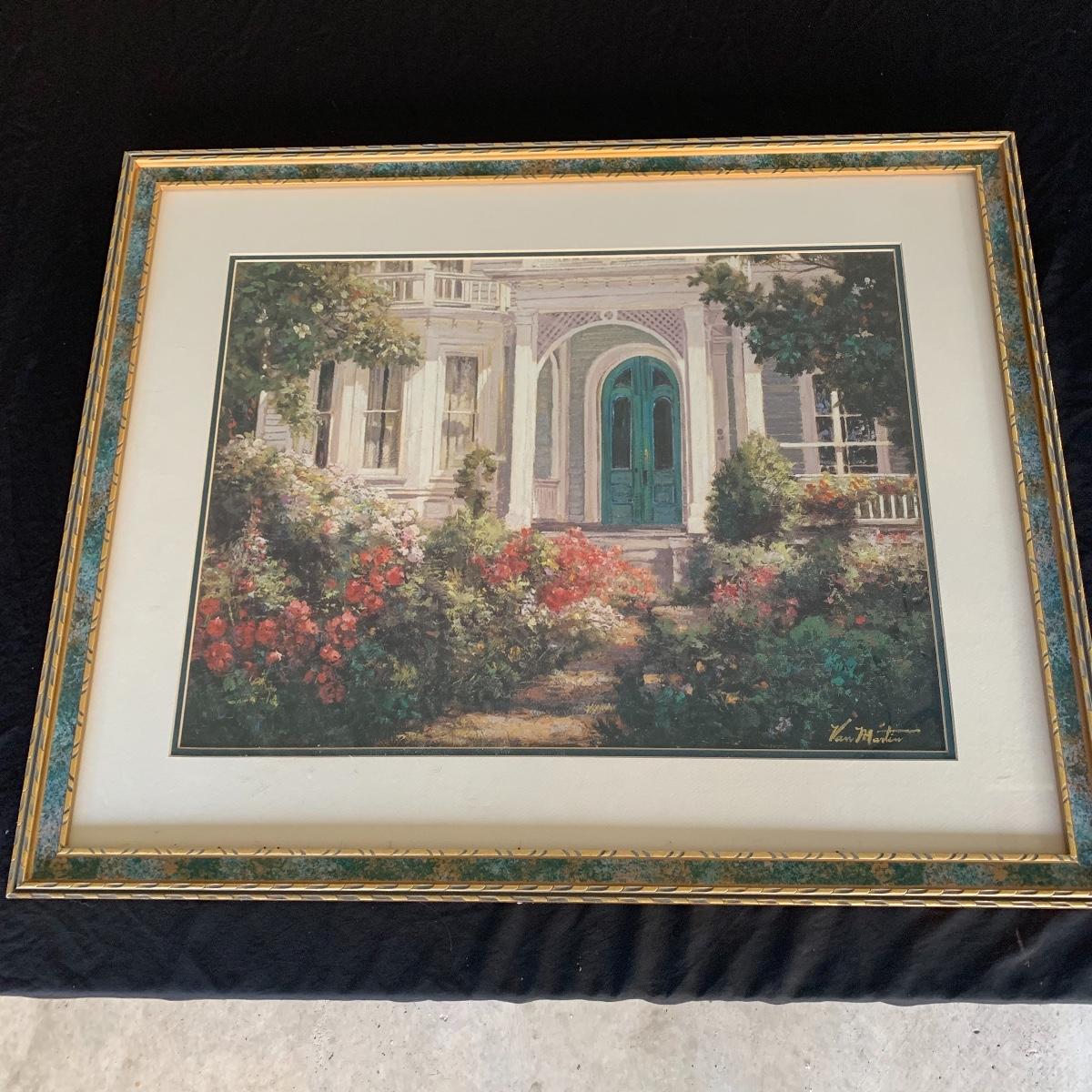 This lovely Van Martin print of a front entrance is double matted and framed with green and gold tones. Frame measures 32.5” x26.6”. Shipping available.