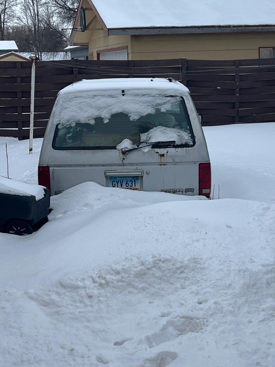 The van there is no title, no keys, and it will need to be pulled from where it currently sits. There is a tight space between the house in the garage. You will need some sort of a winch to pull it into the driveway.