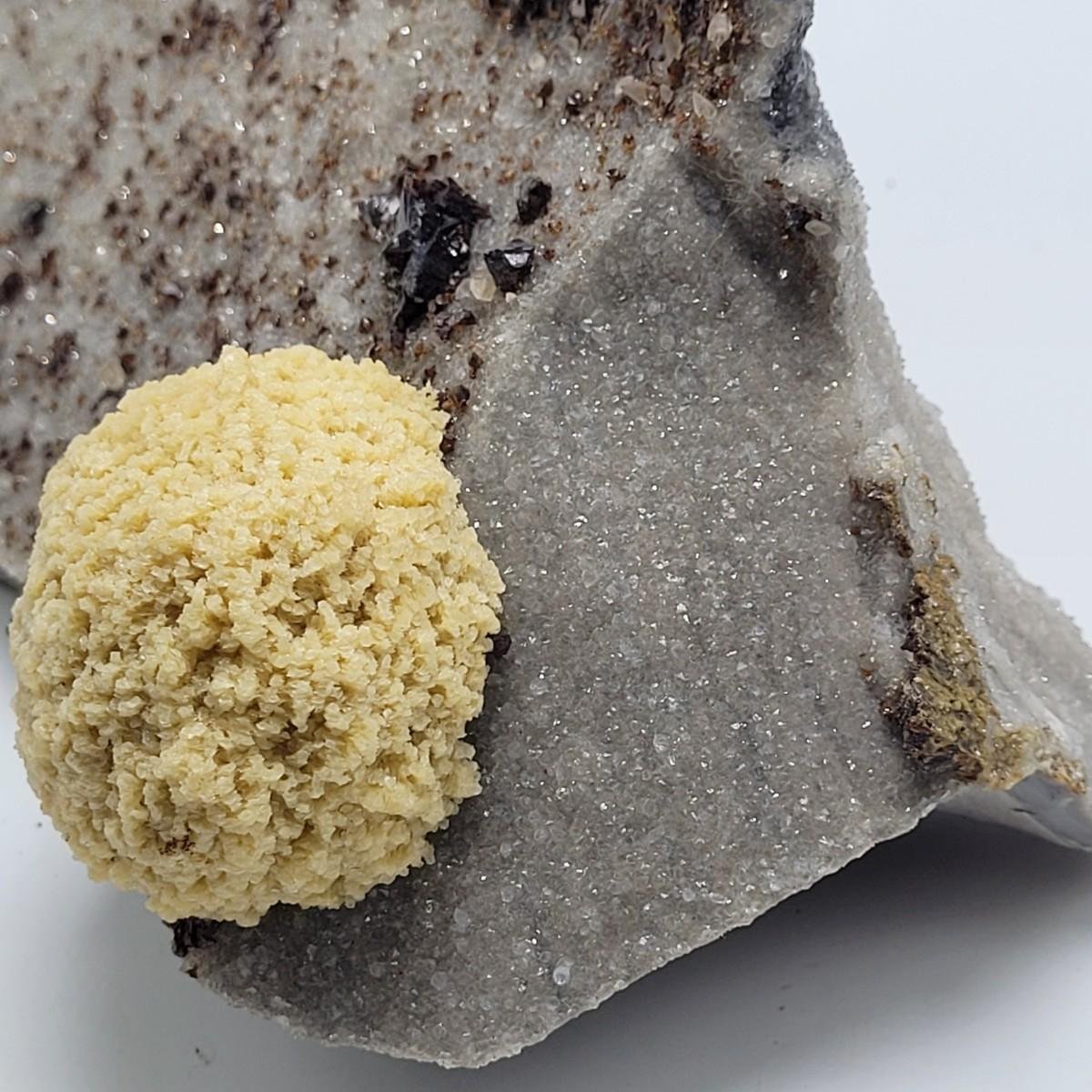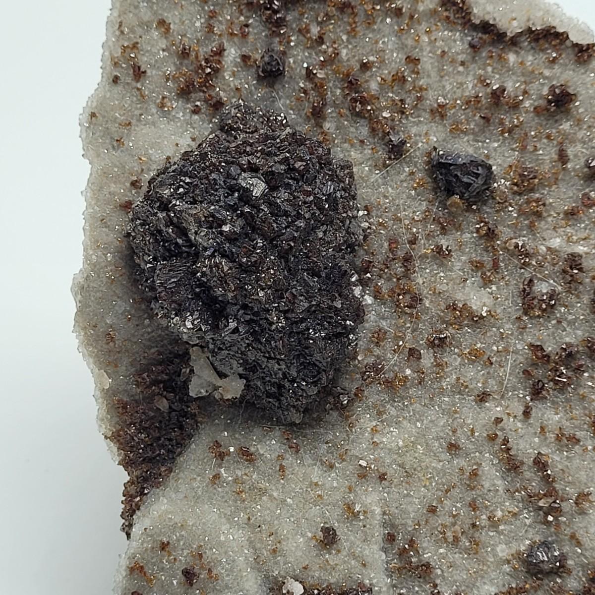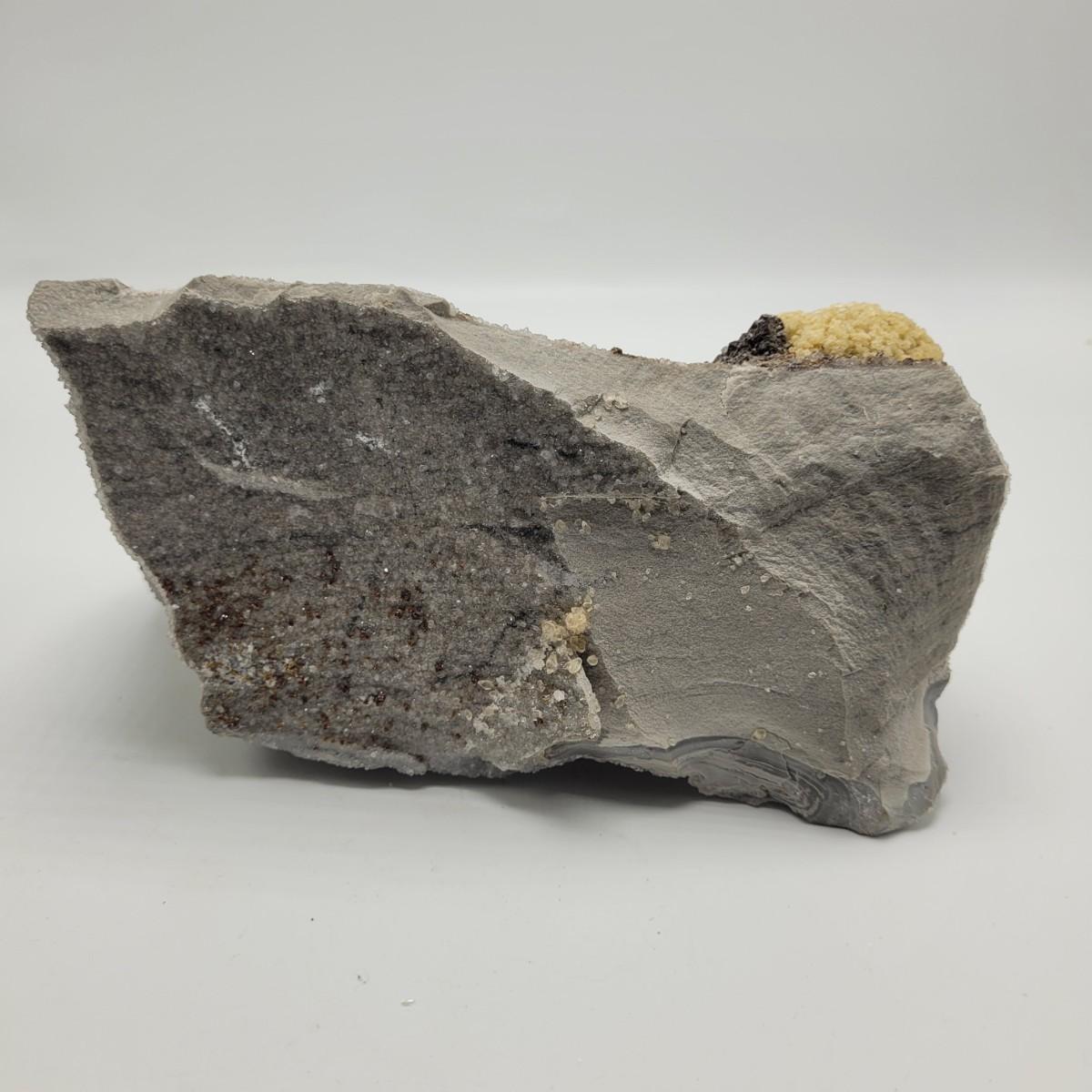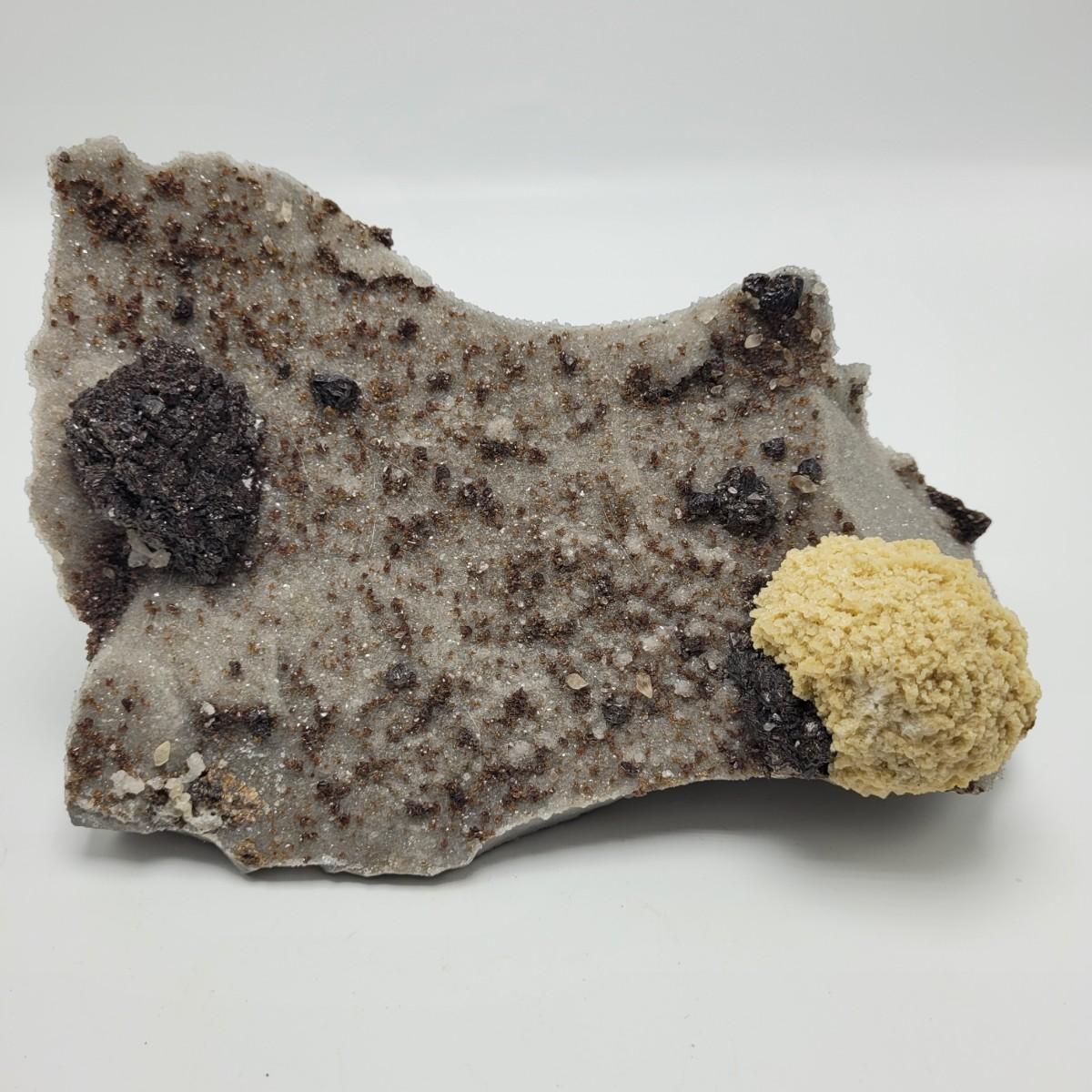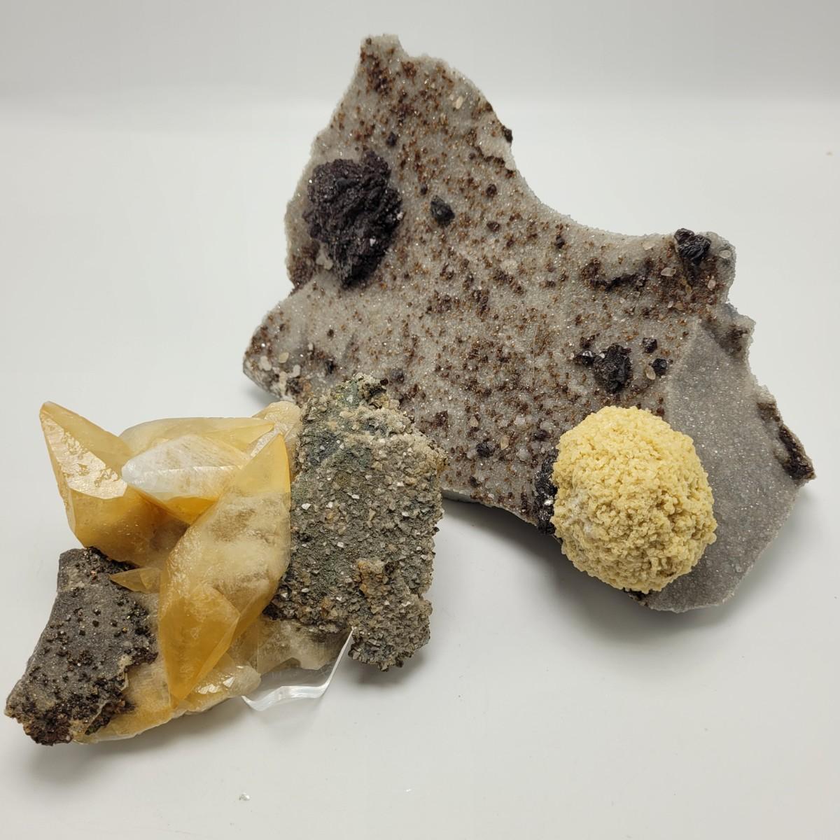 This lot includes what appears to be two clusters of vanadinite and other minerals. The largest cluster appears to be vanadinite and barite. It measures 9" x 4" x 6"H. The other cluster appears to be vanadinite and calcite clustered together. This specimen measures 5" x 3.5" x 3"H. These specimens likely contain heavy metals and should be handled with care.