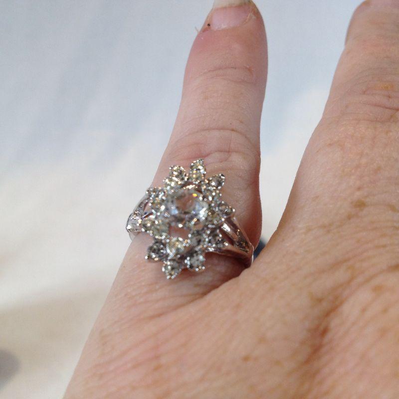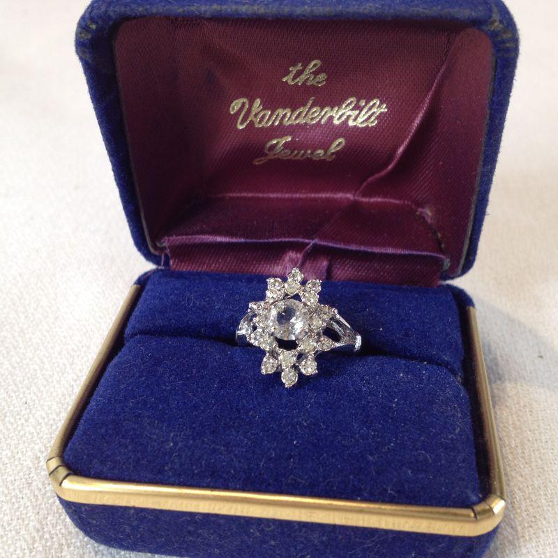 This lot is for a very nice CZ Dinner Ring by Vanderbilt Jewelers. It is a small size 4 3/4. Original box, appears unworn.