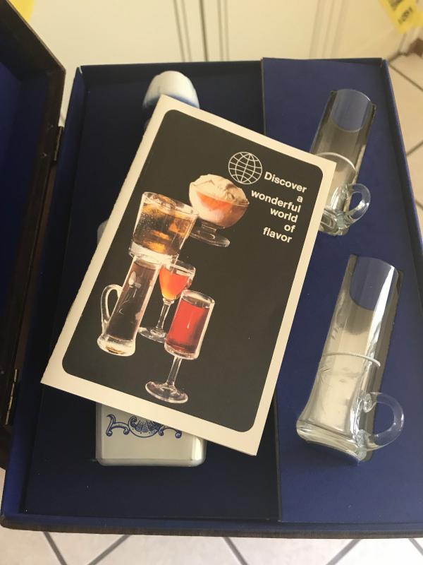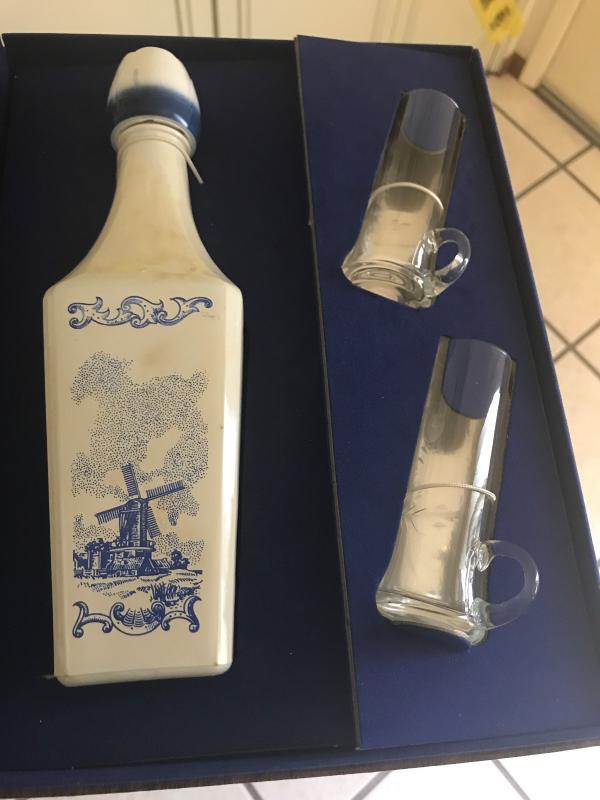 Vandermint Liqueur (Empty) Bottle with Glasses
