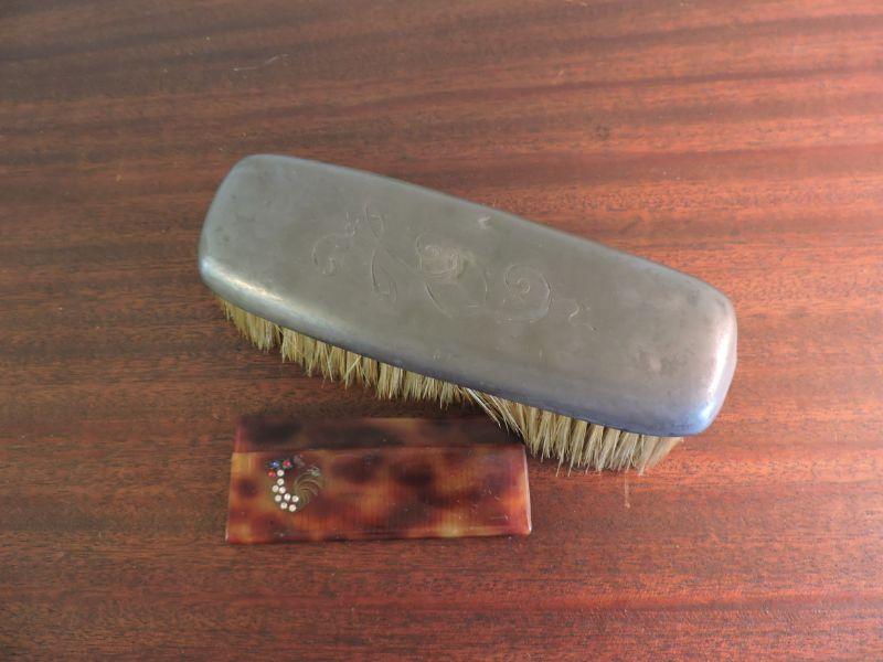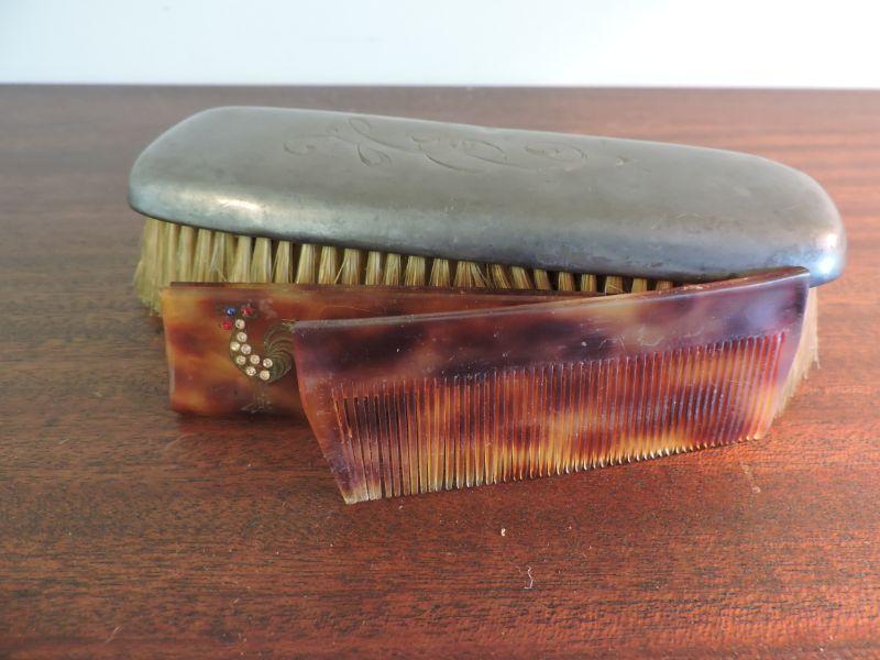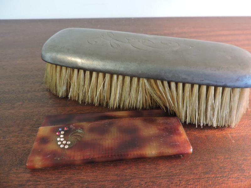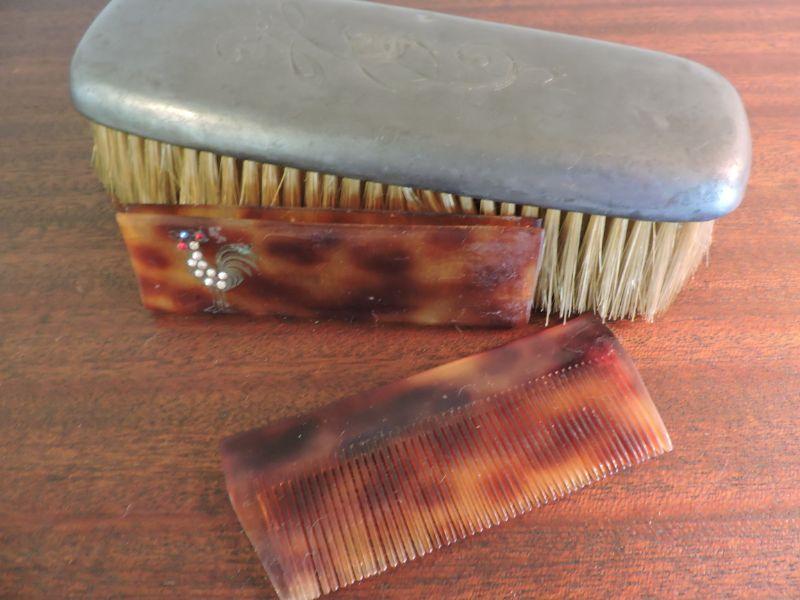 Lovely set of a silver vanity brush and a French tortoiseshell comb with a jeweled rooster. **Please read Terms and Conditions before placing a bid. Pick up is Sunday, September 1, 2019 from 10am to 4pm in Williamstown. All sales are final. All sales are as is, where is. Please review all photos. Any props included in photos are not included in listing. All measurements are approximate. From home with cats.