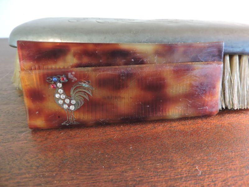 Vanity Brush and French Tortoiseshell Comb with Jeweled Rooster