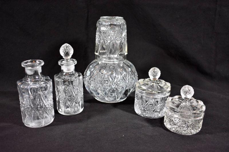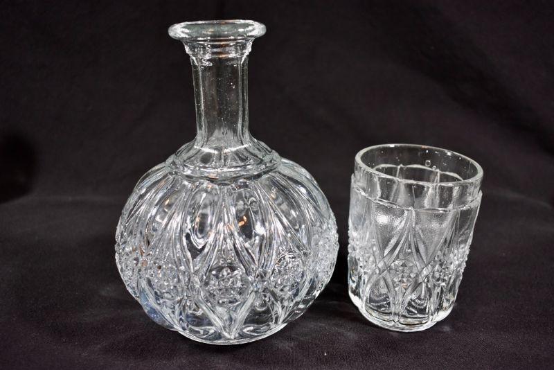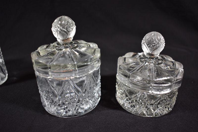 Includes 2 jars, 2 bottles, and a decanter with drinking glass.