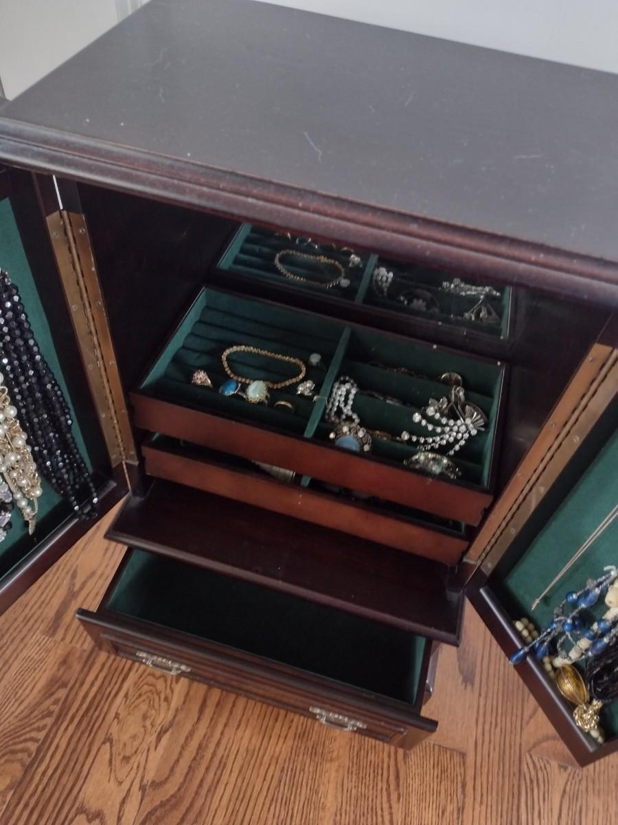 Vanity Top Double Door Jewelry Armoire (No Contents)