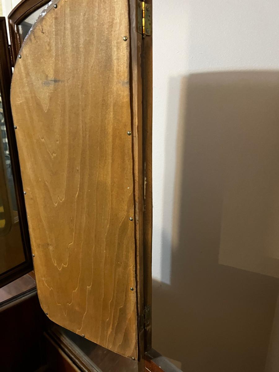 Circa 1930's Tri Fold Mirror. 48 x 19 X 66Tall Shows Wear but includes stool ok Condition