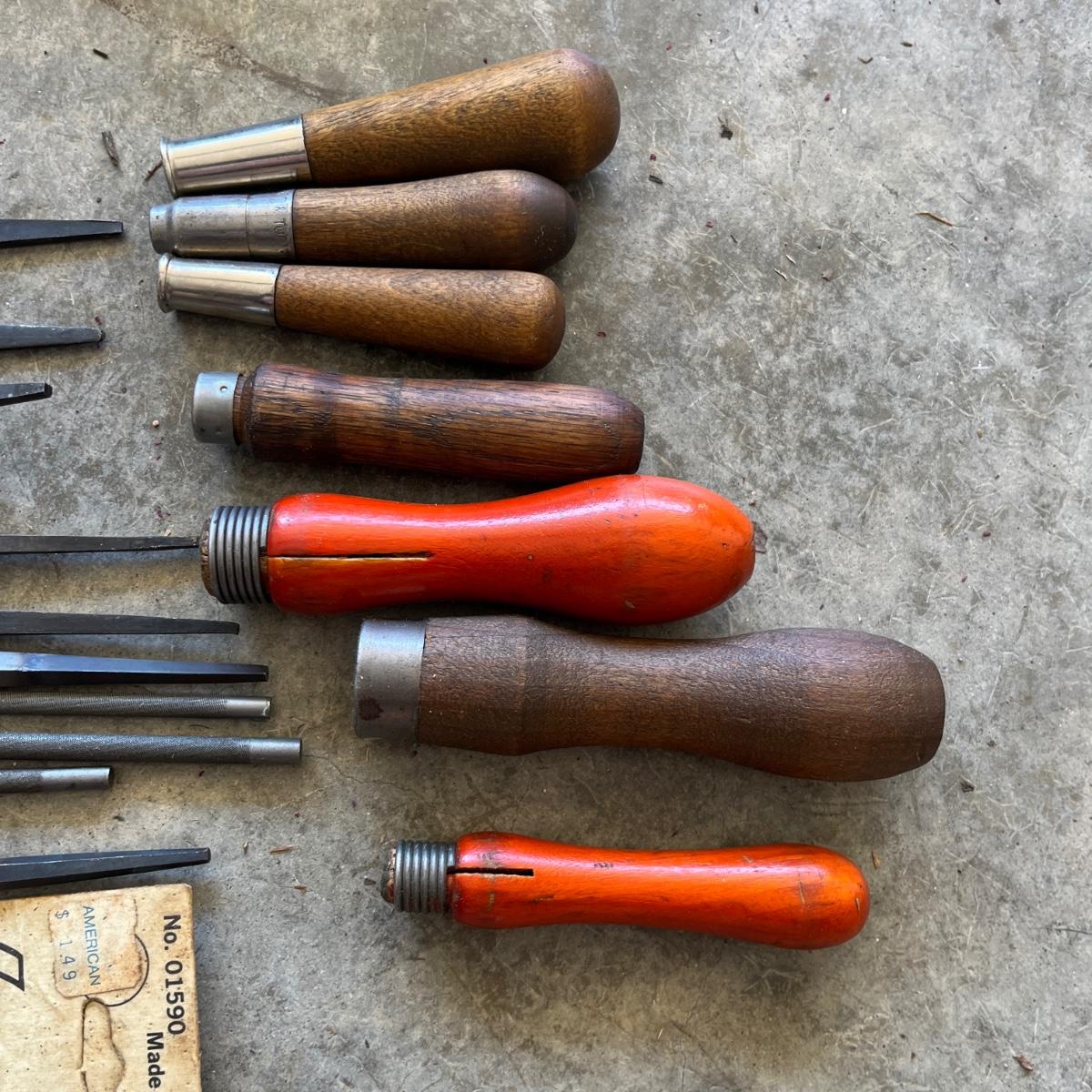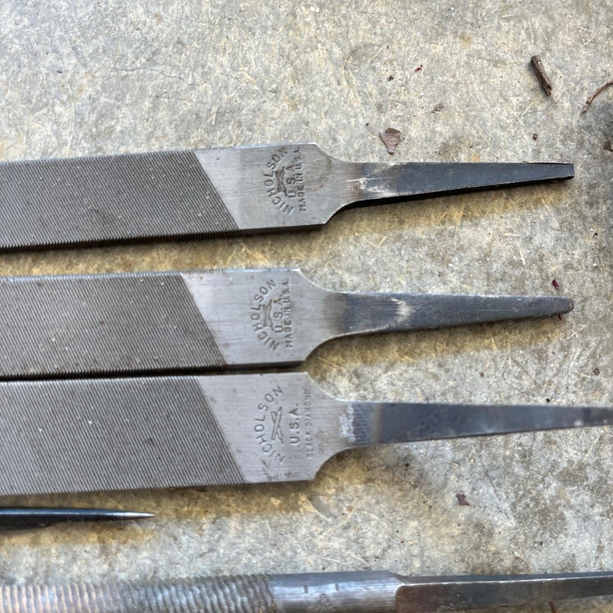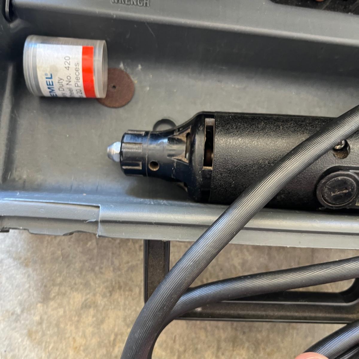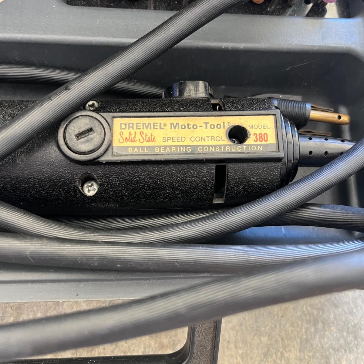 Lot includes a variable speed Dremel tool with plastic carrying case and accessories, over 10 metal files with six wooden handles and 12 Dremel polishing points. Dremel case measures 11” x 7” x 3”H. Dremel powered on when plugged in.