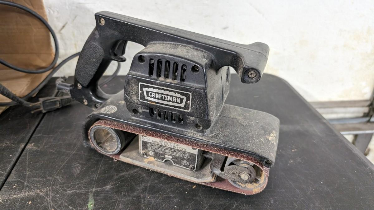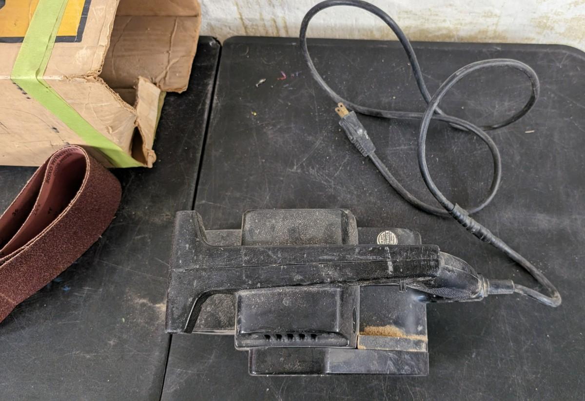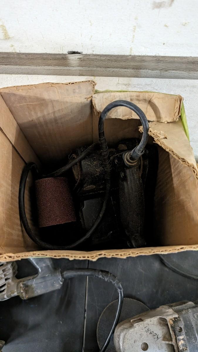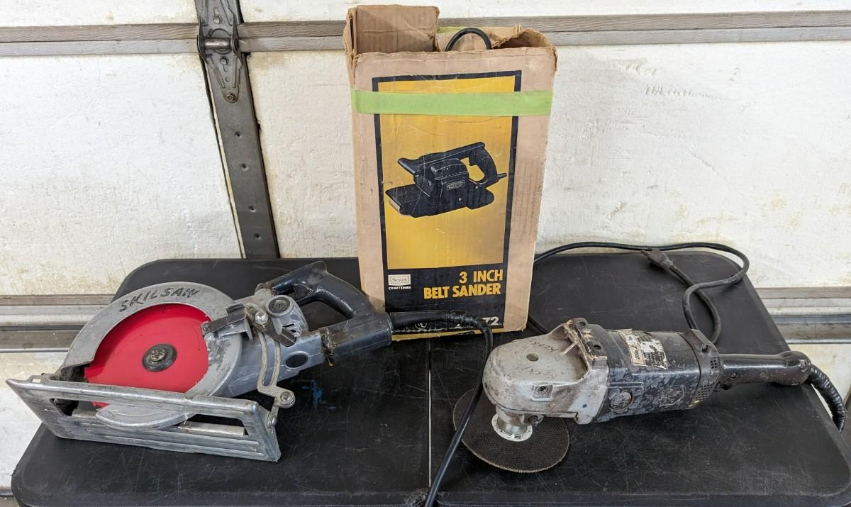 includes belt sander, grinder, router and small amount of bits, and Skil Saw. No shipping