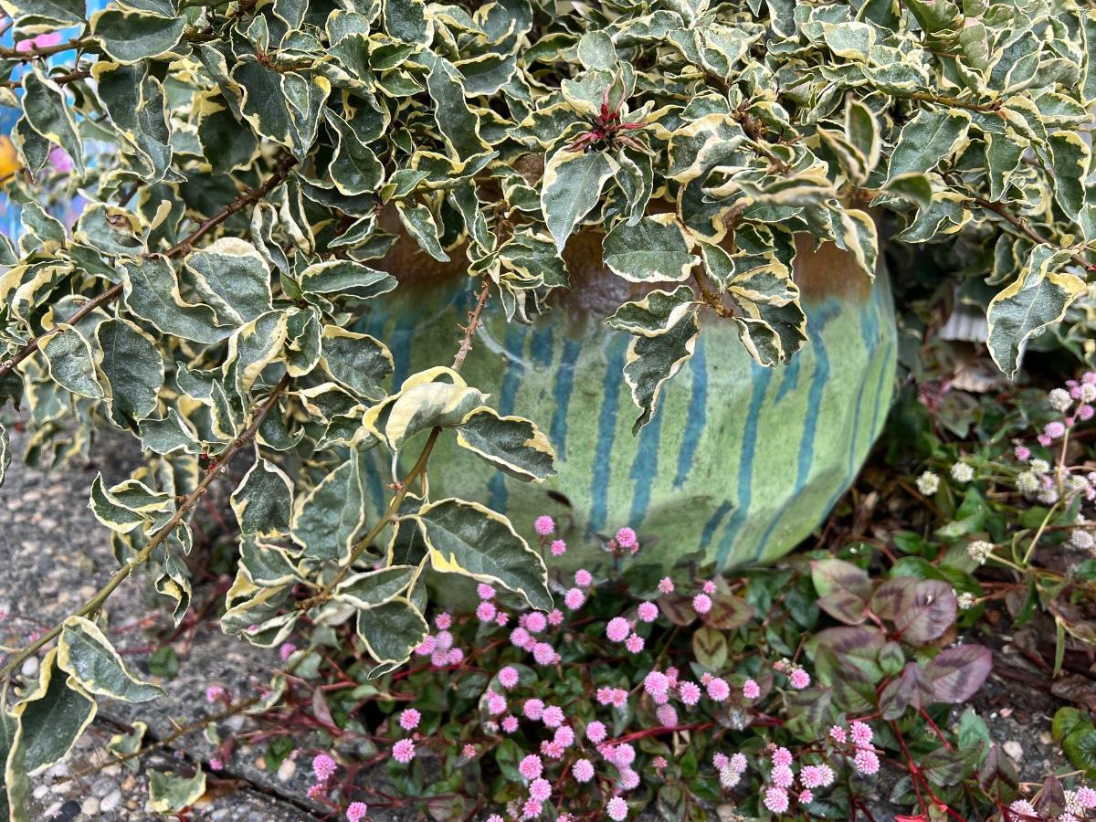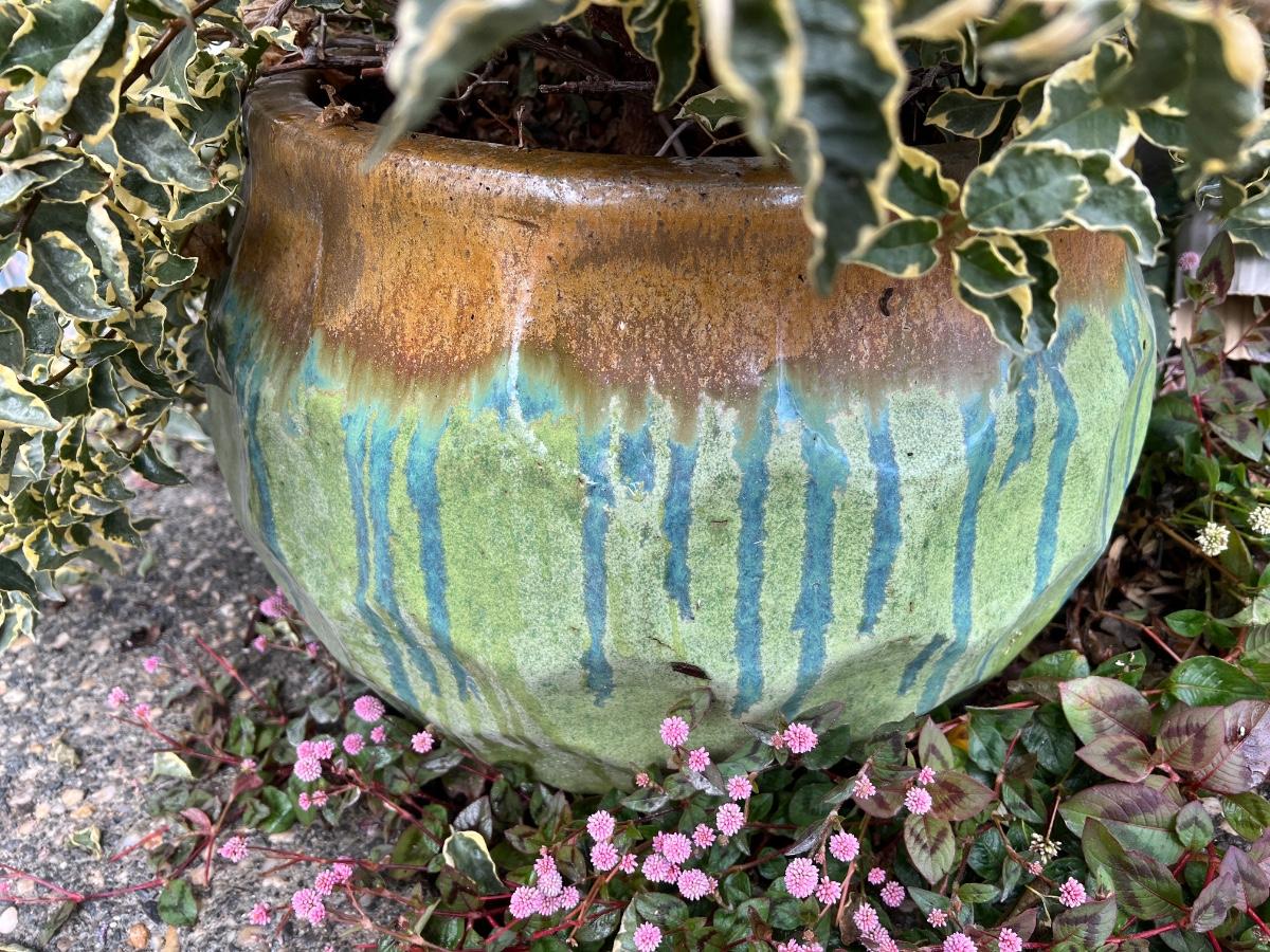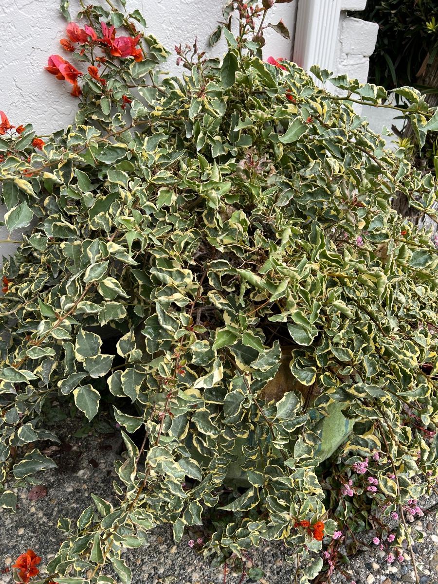 Variegated Bougainvillea in Large Glazed Ceramic Pot