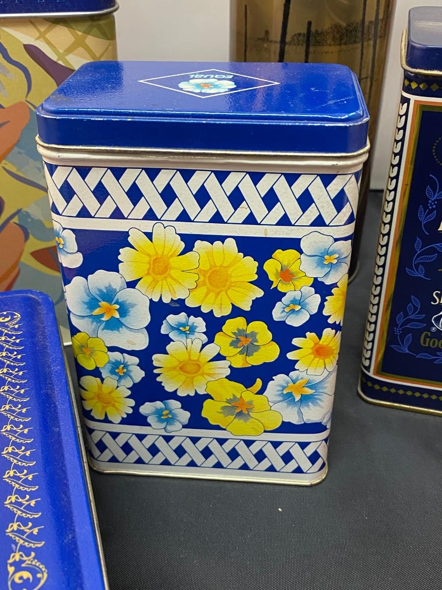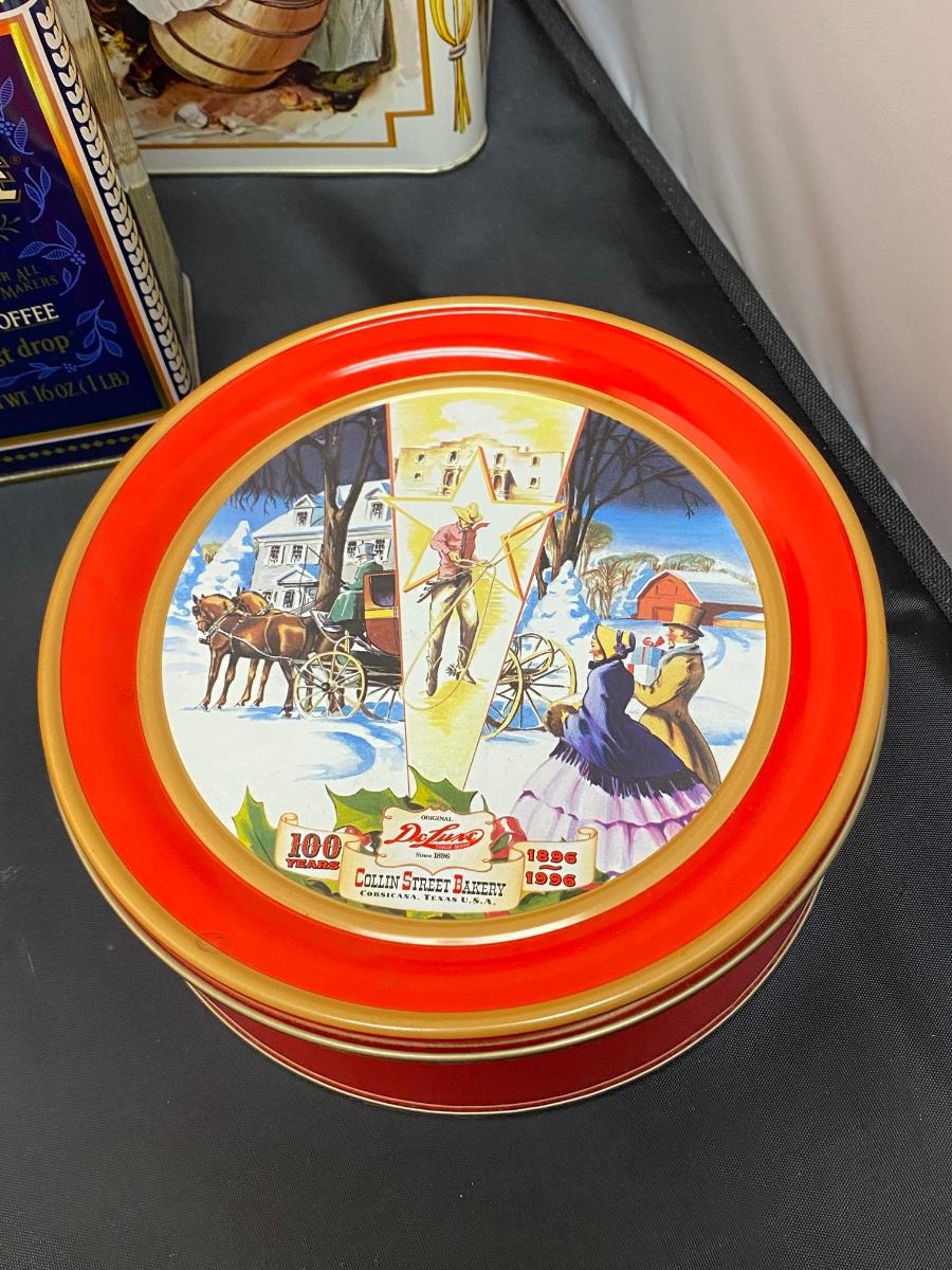 Mixed brand decorative tin lot. All are in good previously displayed condition.