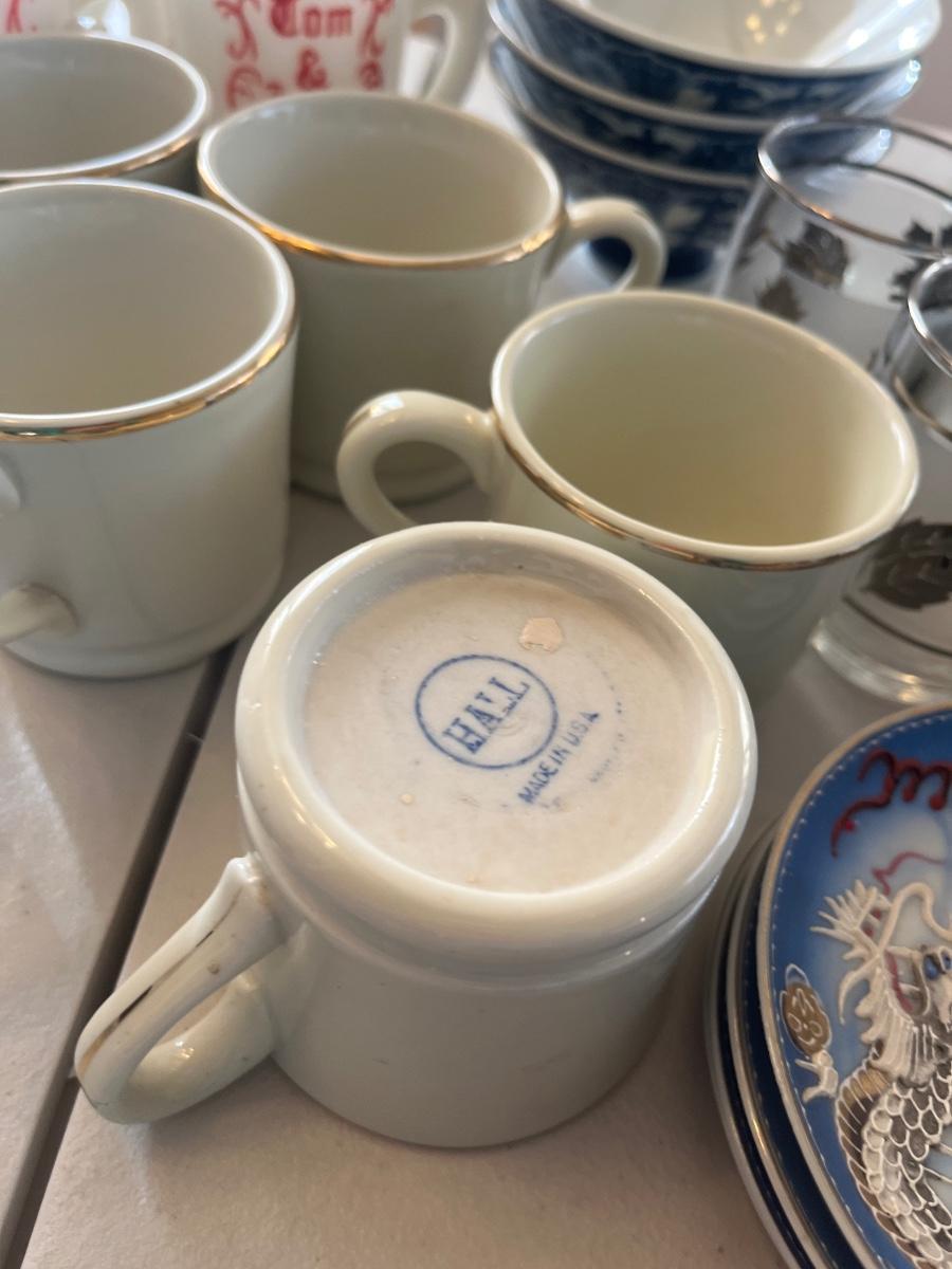 Royal Halsey, Hall mugs, Japan, carnival glass, more!