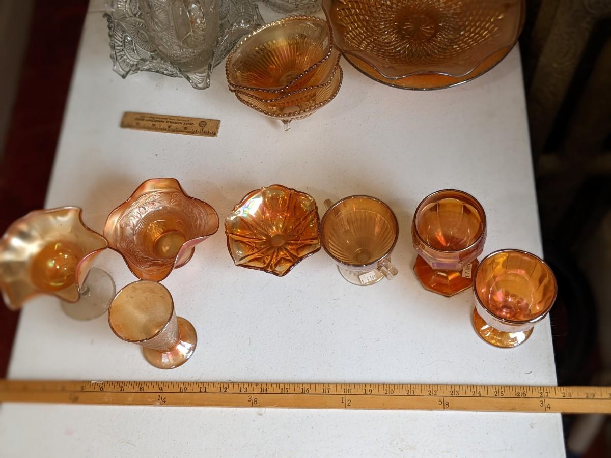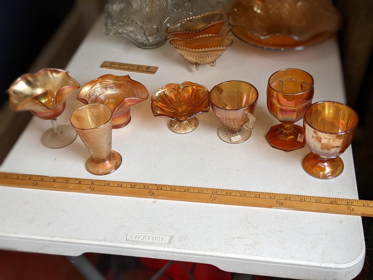 Variety Lot of 7 Iridescent Marigold Glassware