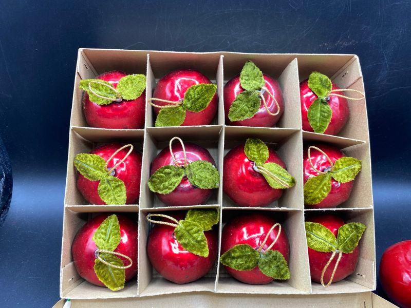 Apple shaped ornaments. Two sizes. Some still in packaging.
