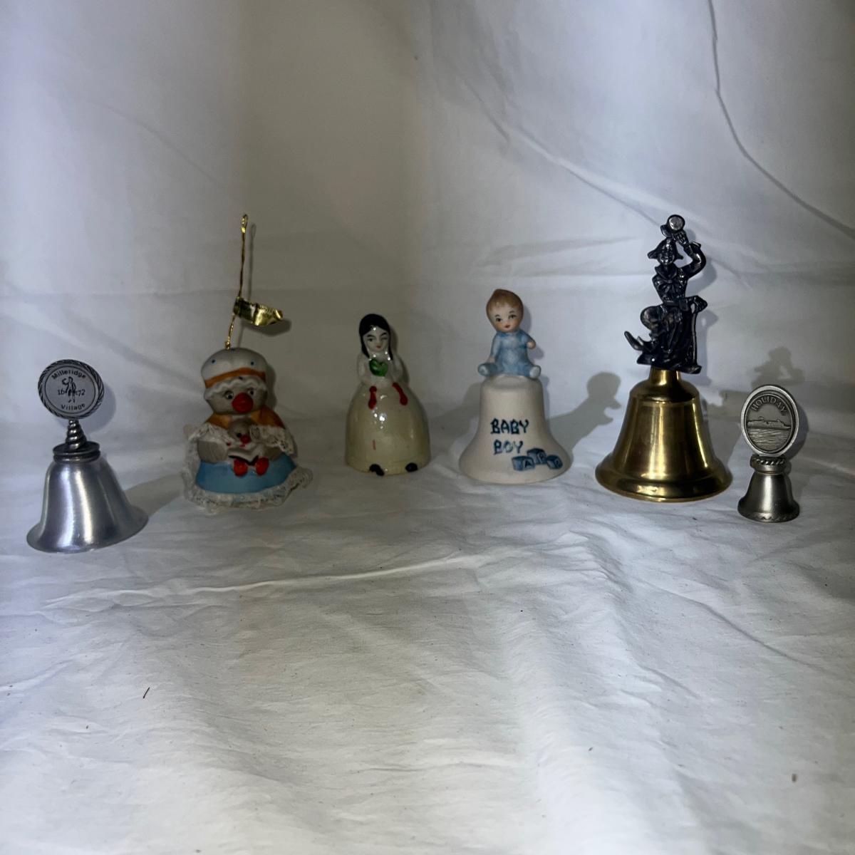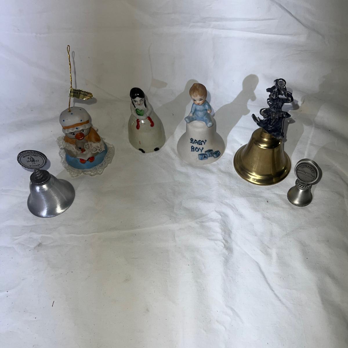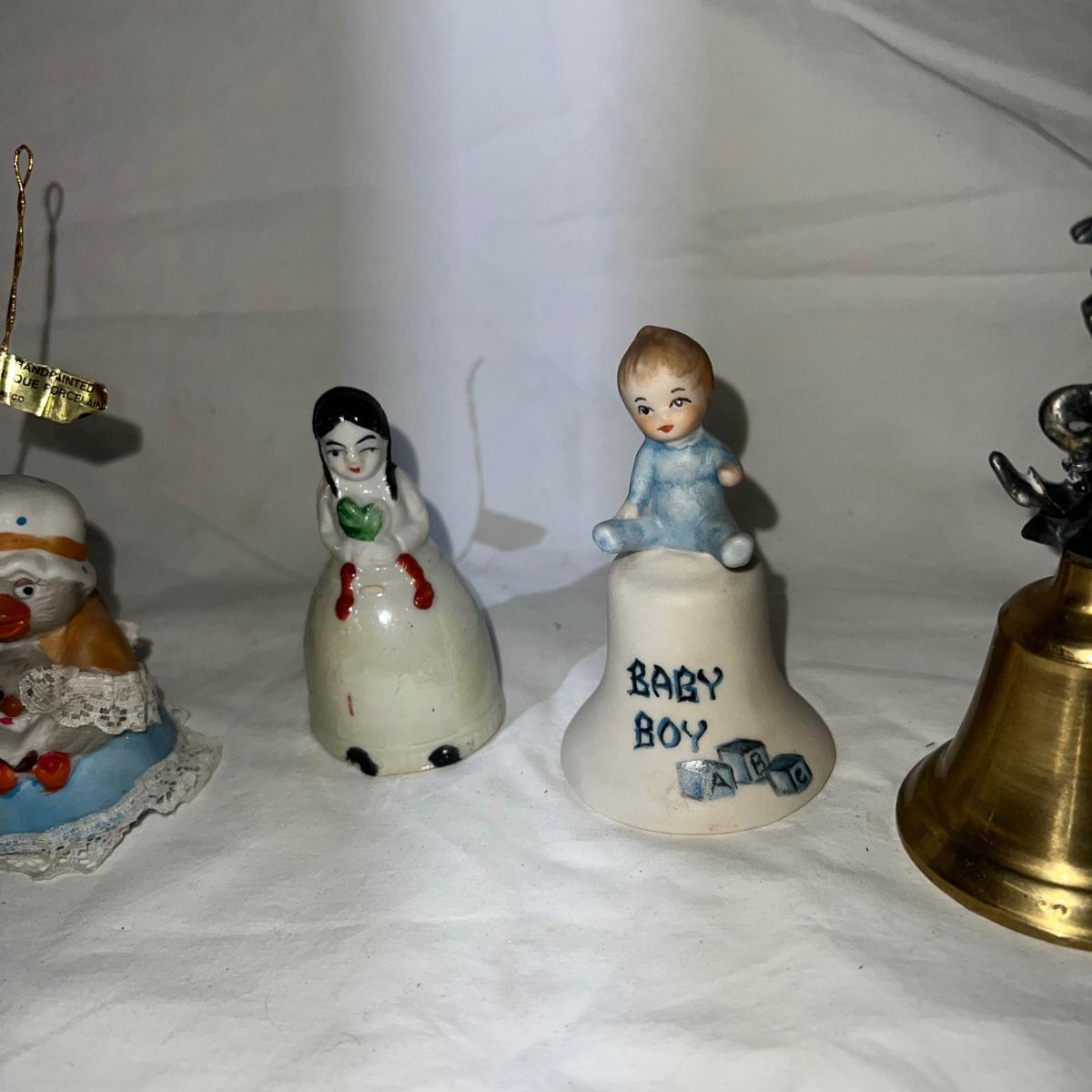 Variety Of Bells, including vintage and antique, some metal and some porcelain