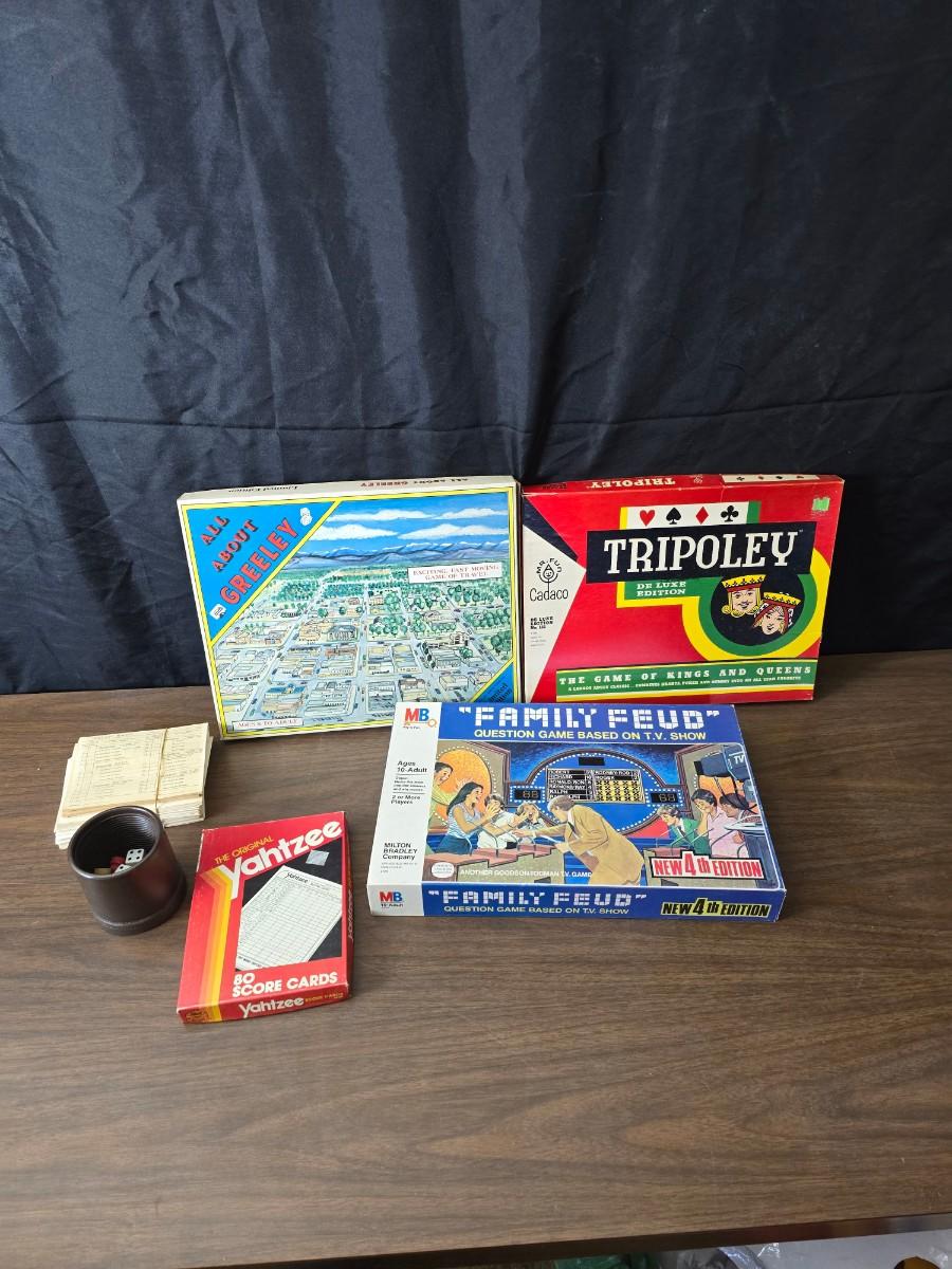 Variety of board games - All about Greeley - Triopley - Family Feud and Yahtzee