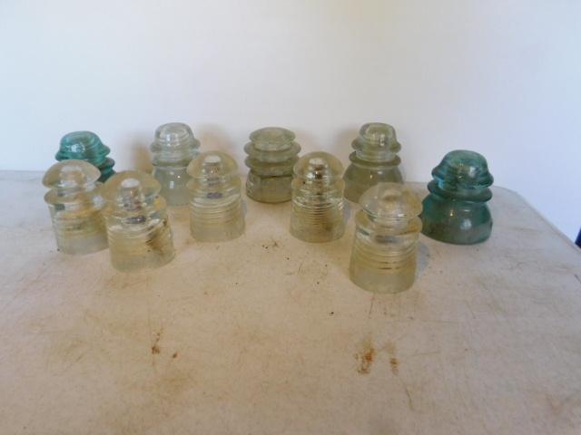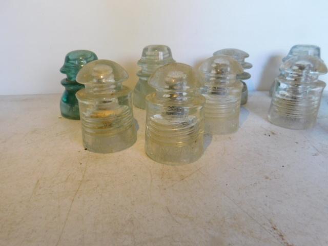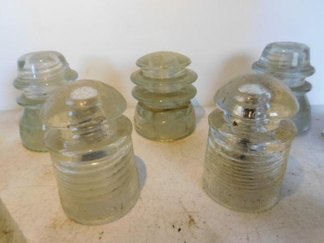 Variety of Brand Name Glass Insulators: Pyrex, Hemingray, Whitall Tatum. expect some chips or discoloration. They will need to be cleaned. About 10 total